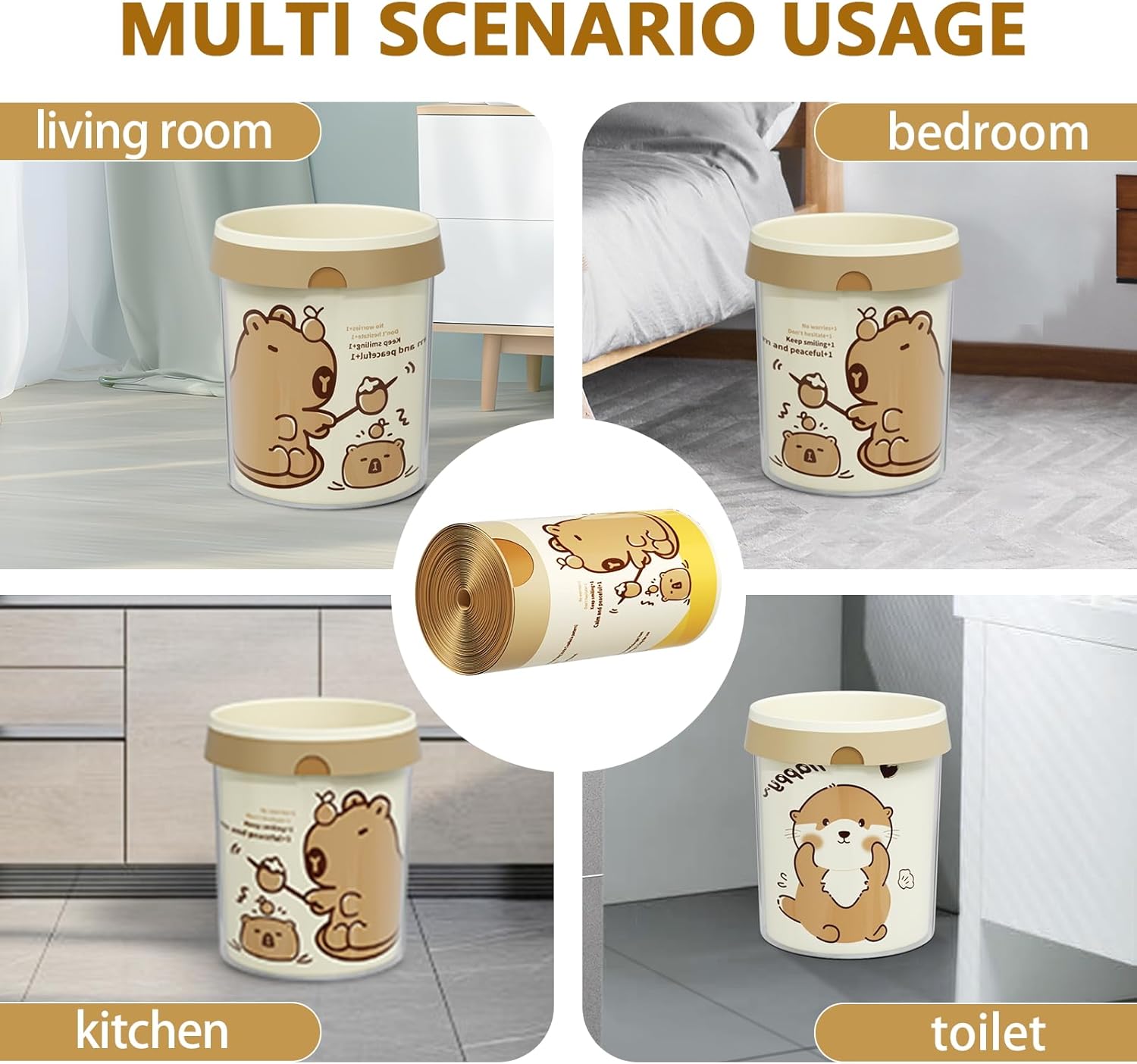 - 🐾【Whimsical Capybara Print for Joyful Spaces】Transform your trash bins into cheerful decor! These 4 gallon trash bags feature adorable capybara patterns —perfect for adding a playful touch to bathrooms, kitchens, or kids’ rooms. Unlike plain small garbage bags , our design sparks smiles every time you toss!