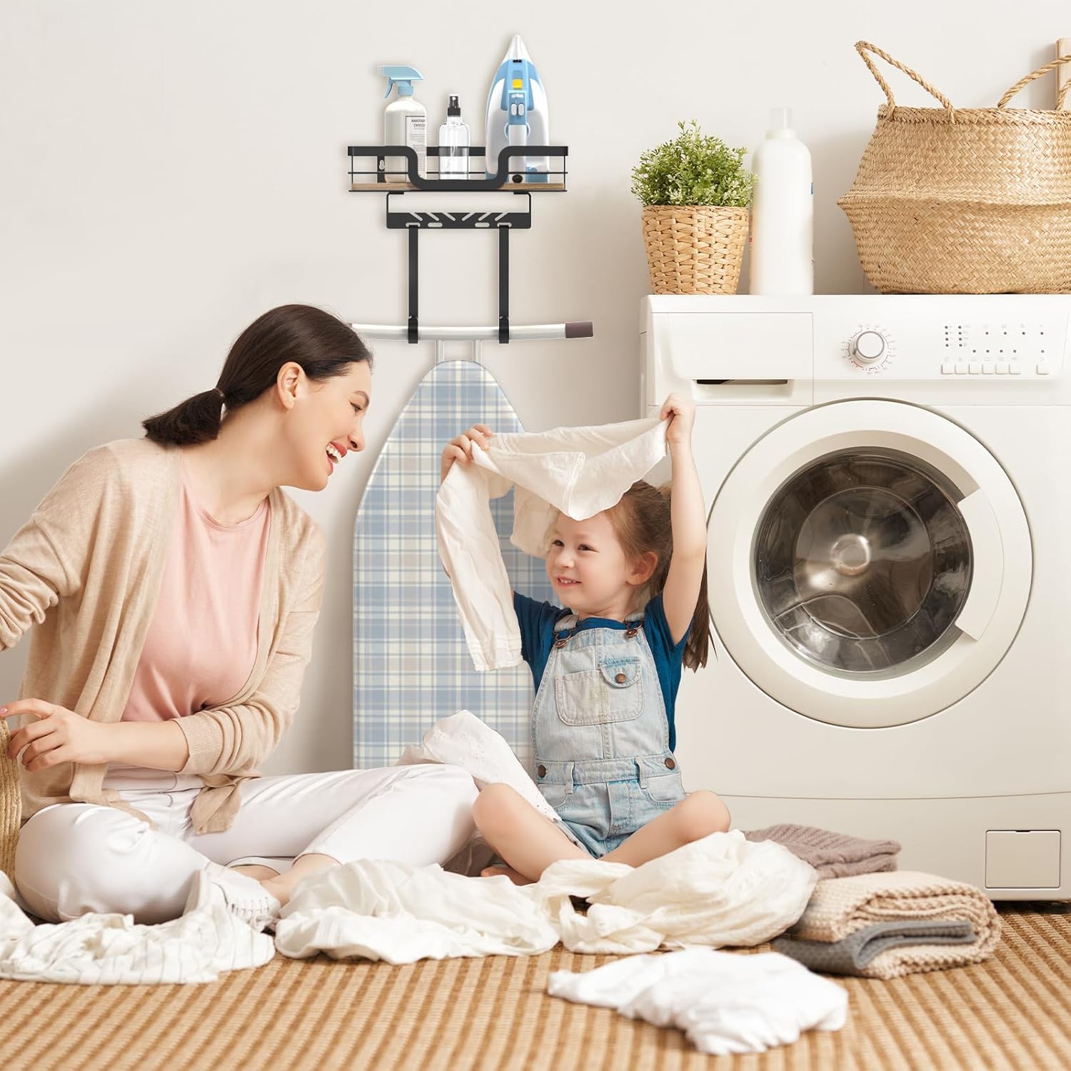 - MULTIFUNCTIONAL HOME ORGANIZER: This living room decor wall ironing board hanger wall mount is not only suitable for laundry room to store ironing accessories, but also for utility room, sewing room, bathroom, living room or entryway, etc. to keep your home organized.Great for laundry room decor.