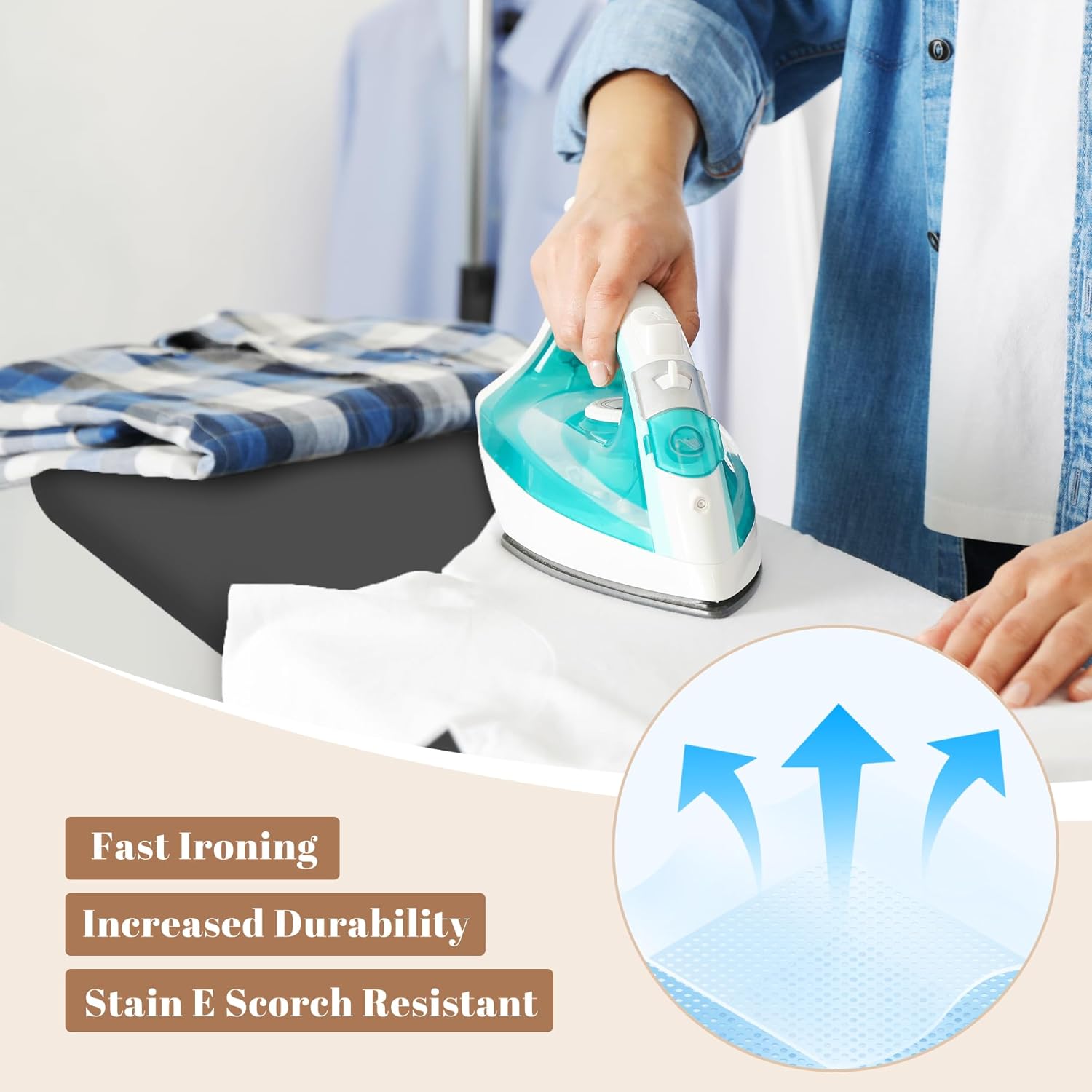 - COMFORT FEATURES: Extra thick padding provides smooth ironing surface and enhanced comfort during extended use