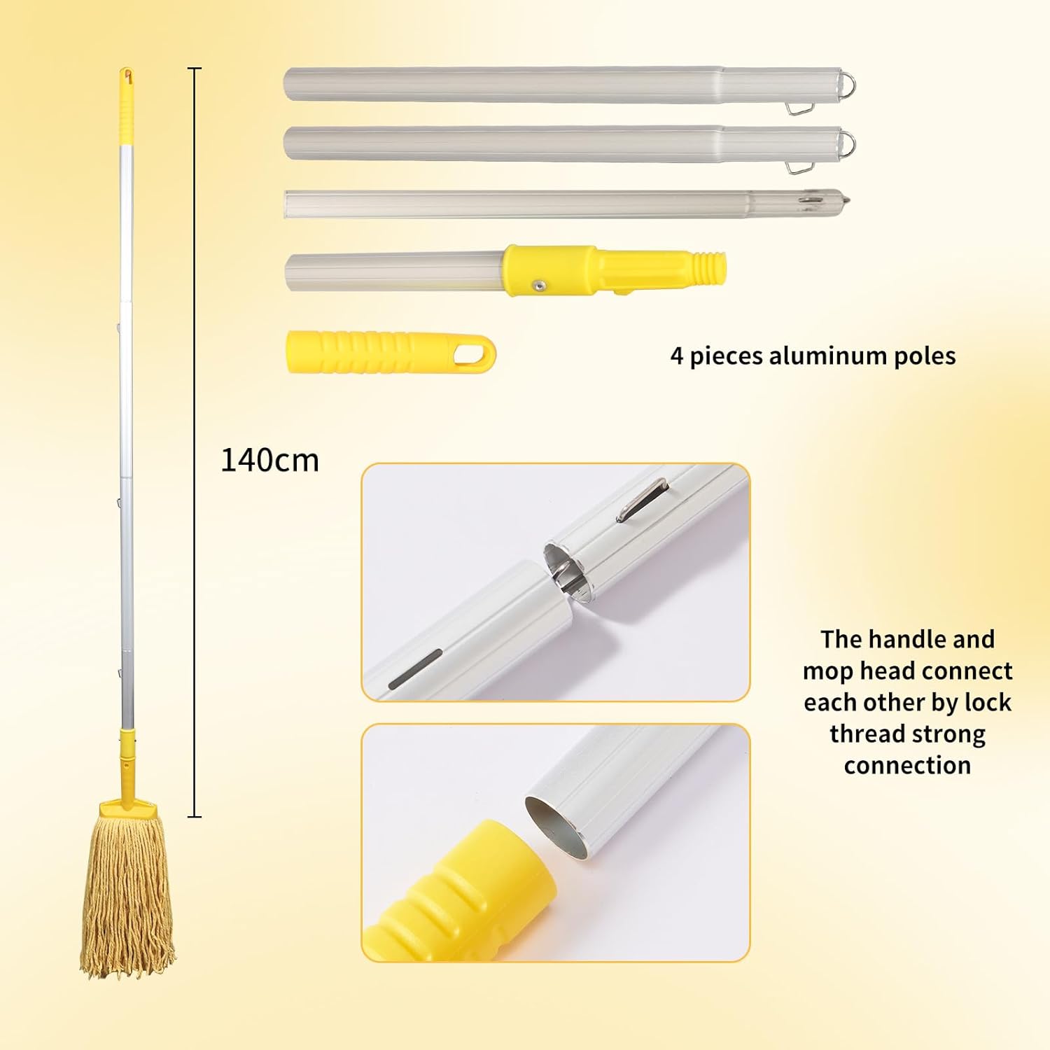 - Equipped with 360-degree 4pieces smooth-rolling casters wheels, ensuring the mop can move flexibly in any direction,significantly boosting work efficiency. bright yellow color for easy visibility and added safety.