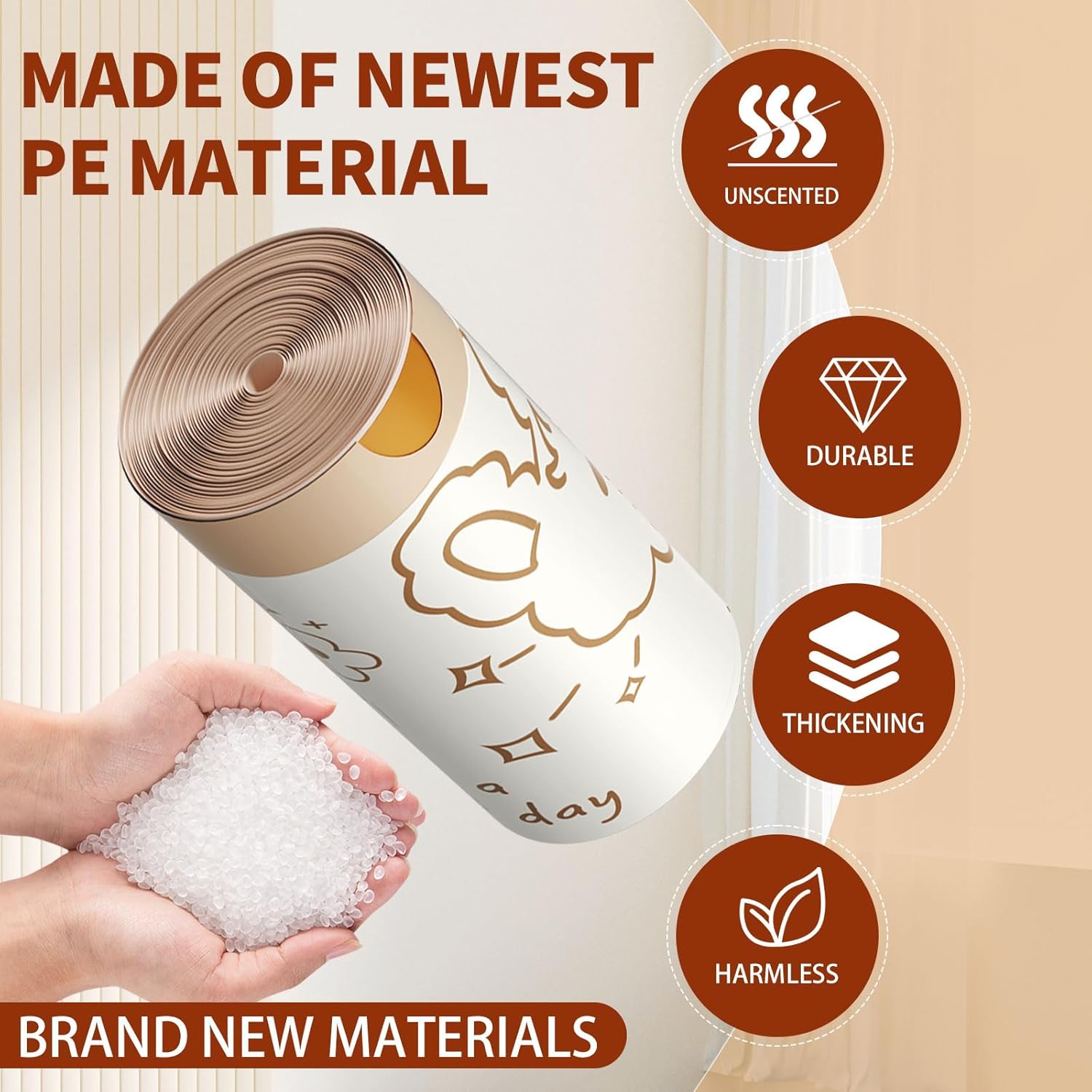 - đŚă60-Pcs Value & Pre-Cut ConvenienceăEach roll of 4 gallon garbage bags includes 60 pcs pre-separated bagsâno tearing needed! Compact storage meets daily needs. Whether for bathroom trash cans, bedside bins, or pet areas, enjoy beauty and durability in every bag!