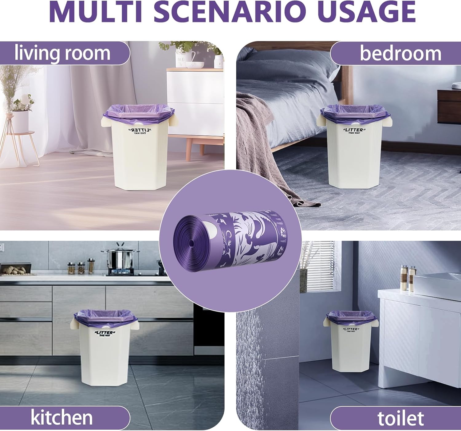 - 【Multi-purpose】: These trash bags 8 gallon are not only suitable for indoor use (office, kitchen, living room, bedroom, bathroom, diaper disposal, paper shredder, etc.), but also suitable for outdoor use (cat litter, poop bags for dogs, car trash bag, etc.)