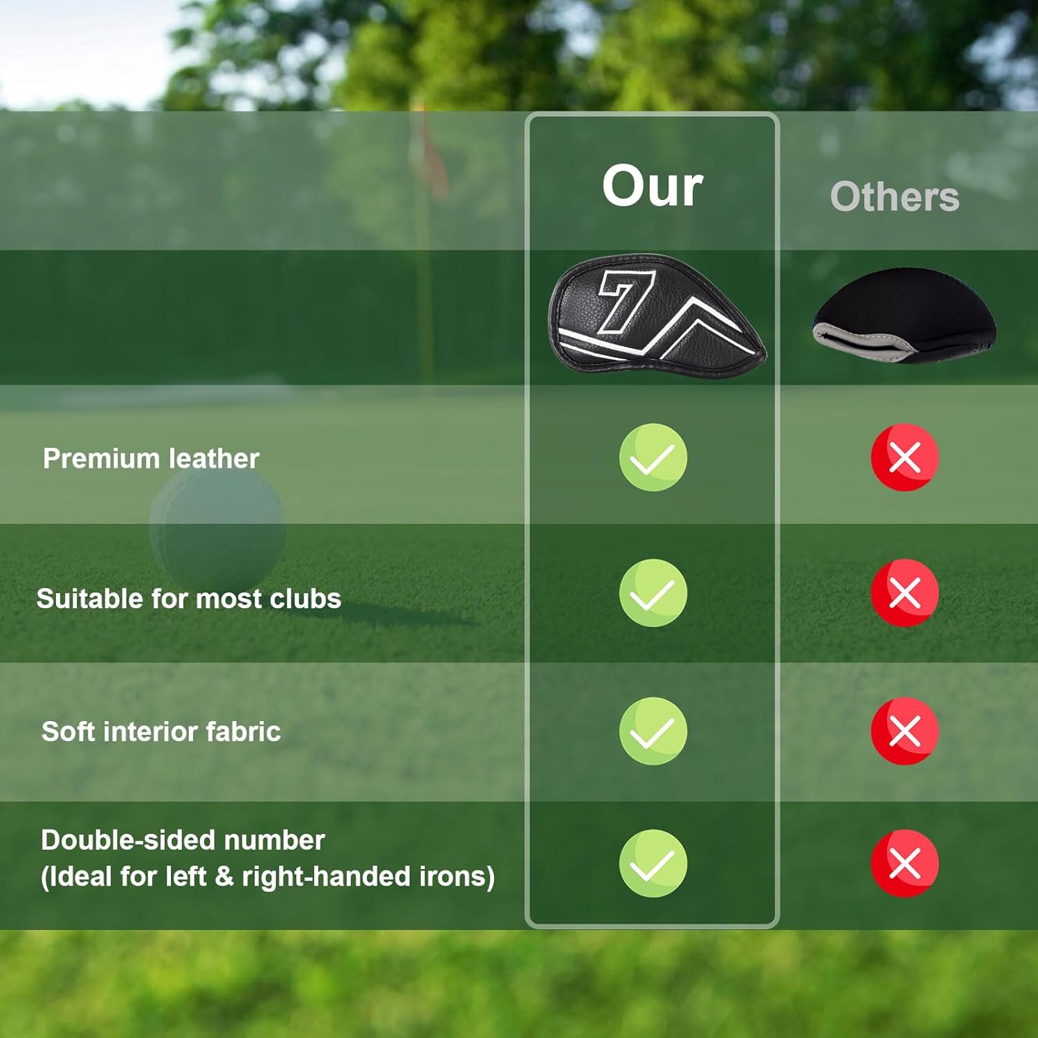 - 【Double-Sided Embroidered Club Number】Each of these golf head covers for golf clubs features embroidered number on both sides, making it easier to identify your clubs from any angle. The dual-sided embroidery helping you quickly locate the right club.