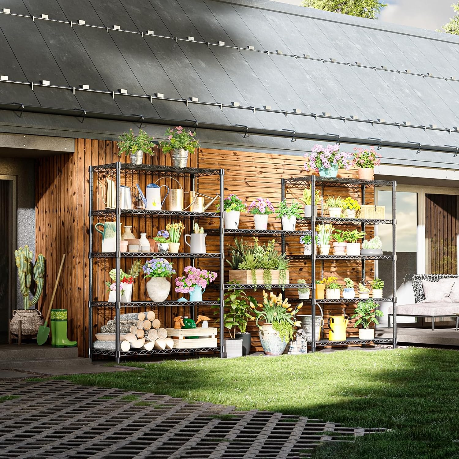 - ăSleek Black Finish â Modern & Durable LookăThis IZEUK 5-tier shelving unit features a classic black powder-coated finish, adding a sleek, modern touch that blends seamlessly into any space. The black color not only enhances visual appeal but also provides excellent resistance to rust and dirt, making it ideal for long-term indoor and garage use.
