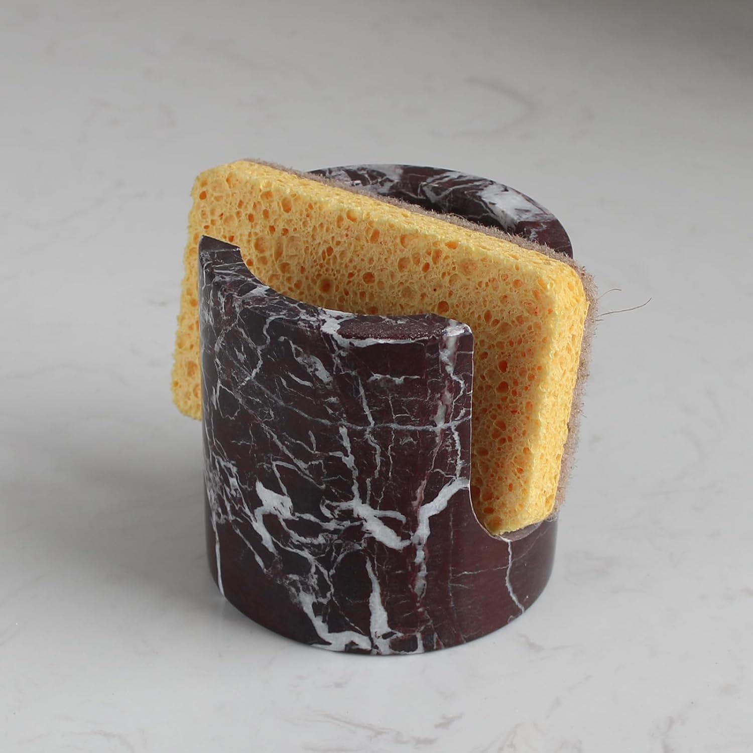 Natural Travertine Sponge Holder for Kitchen Sink, Drying Rack, Compact Sink Caddy Organizer (Rosso Levanto Marble)
