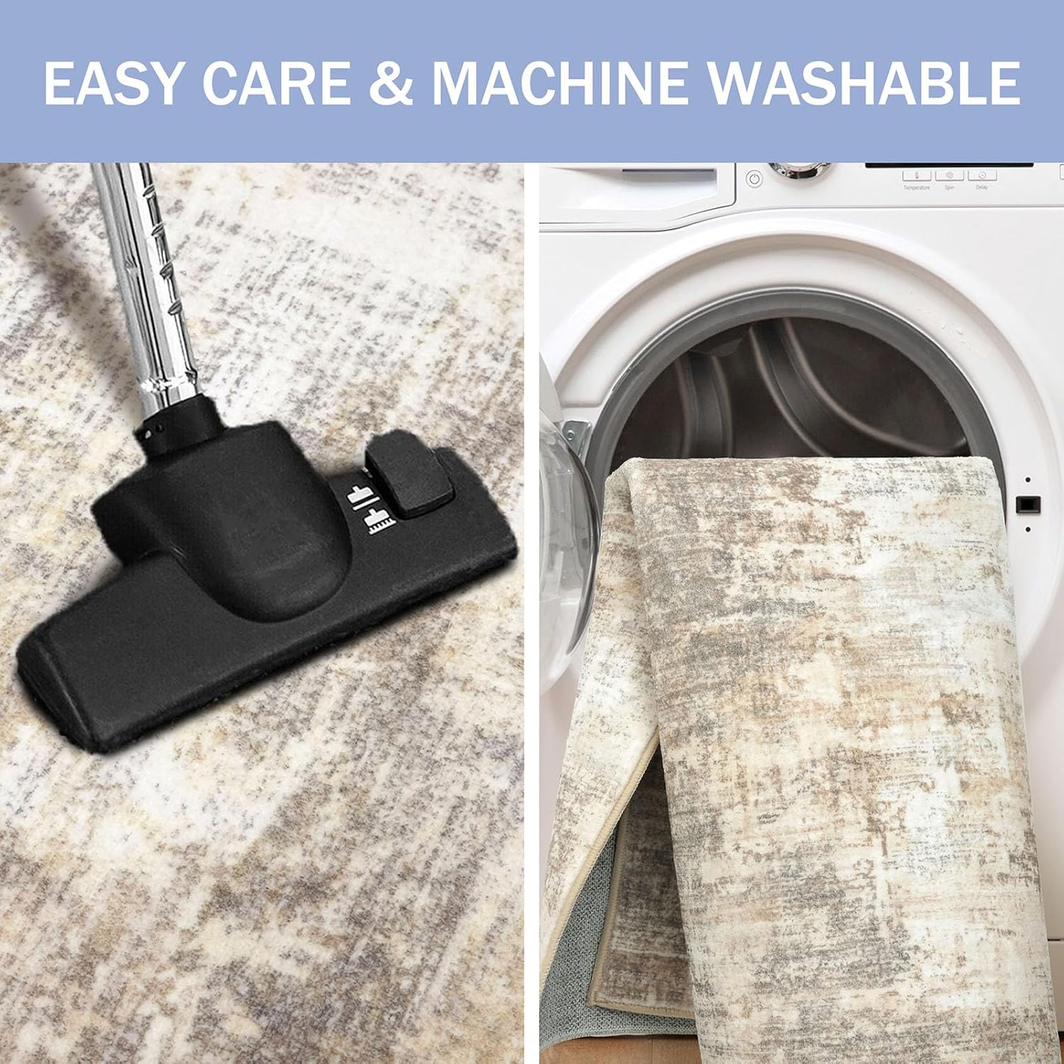 - Machine Washable: This circle rug is machine washable for easy maintenance, keeping it fresh and vibrant without the need for manual cleaning. Noted: When vacuuming, use a low setting or a robotic vacuum to prevent shifting or bunching