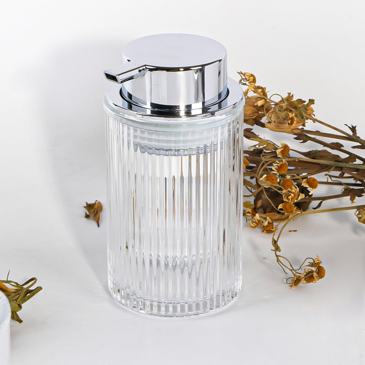 - 【 Glass Foaming Soap Dispenser 】 Made of high-quality thick glass, stylish foaming soap dispenser is durable and sturdy. The appearance is designed with unique ribbed, soap bottle container with the large surface pump, even children can use it easily