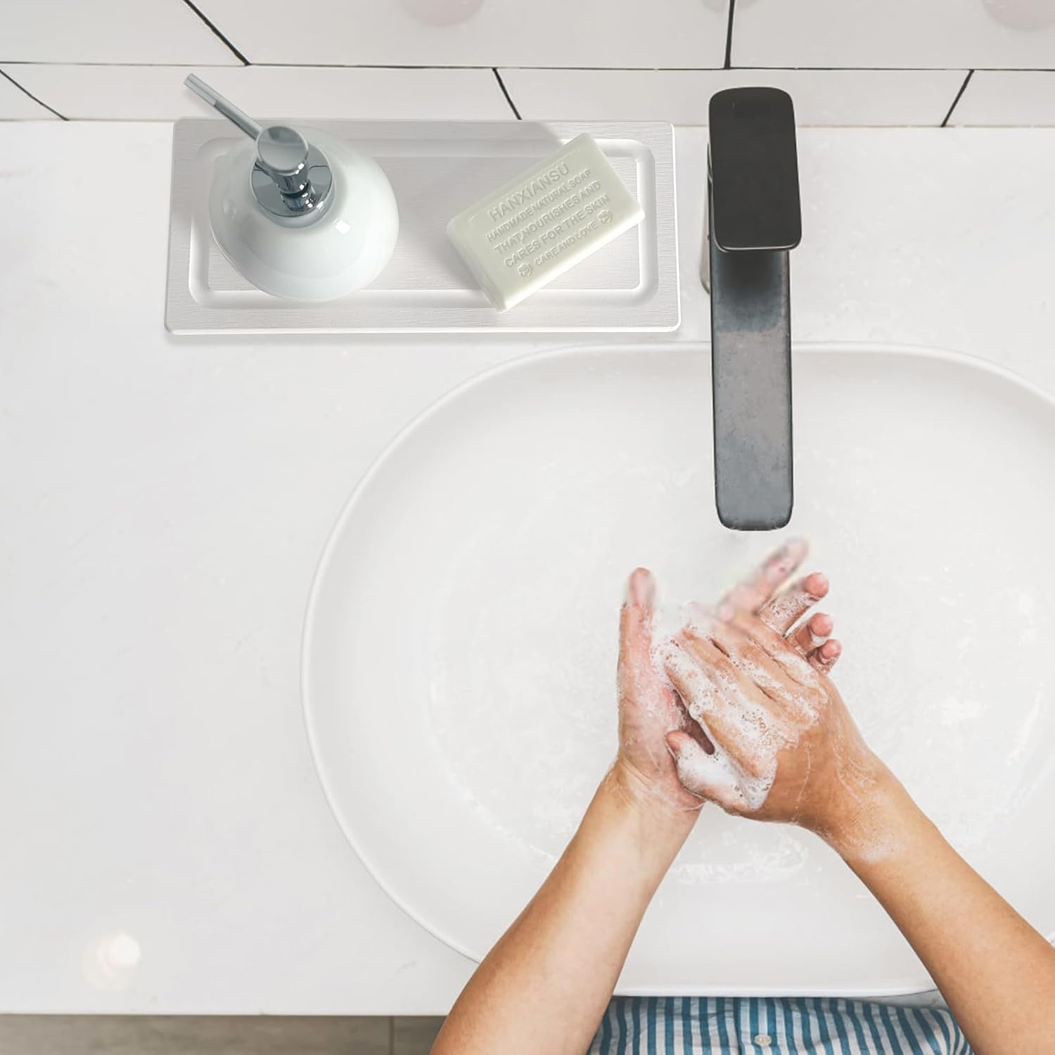 - 【Multifunctional】This versatile diatomite tray works perfectly for bathroom sinks and kitchen counters. Ideal as a drying base for soap, cups, hand soap bottles and cosmetics. Keeps surfaces dry and tidy for a cleaner, more organized space.