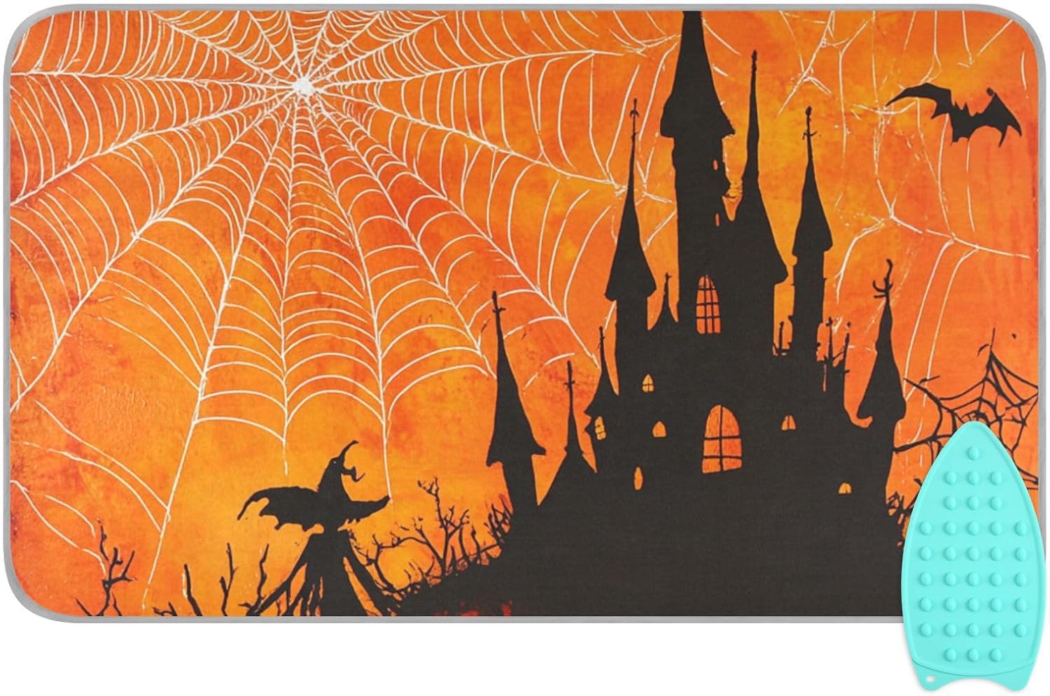 Orange Halloween Bat Castle 01 Ironing Mat for Table top Portable Ironing Pad Blanket for Washer Dryer Countertop Travel