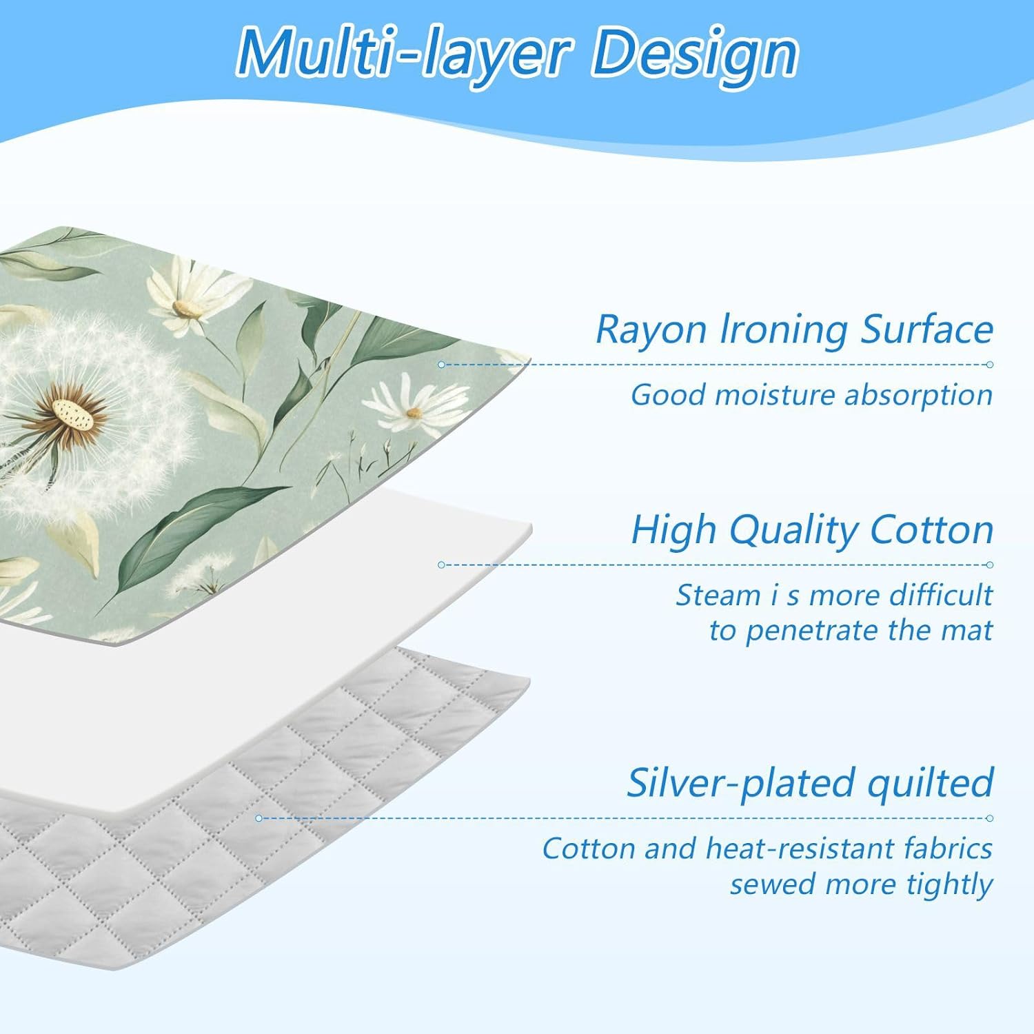 Sage Green Dandelions Flower Ironing Mat for Table top Portable Ironing Pad Blanket for Washer Dryer Countertop Travel