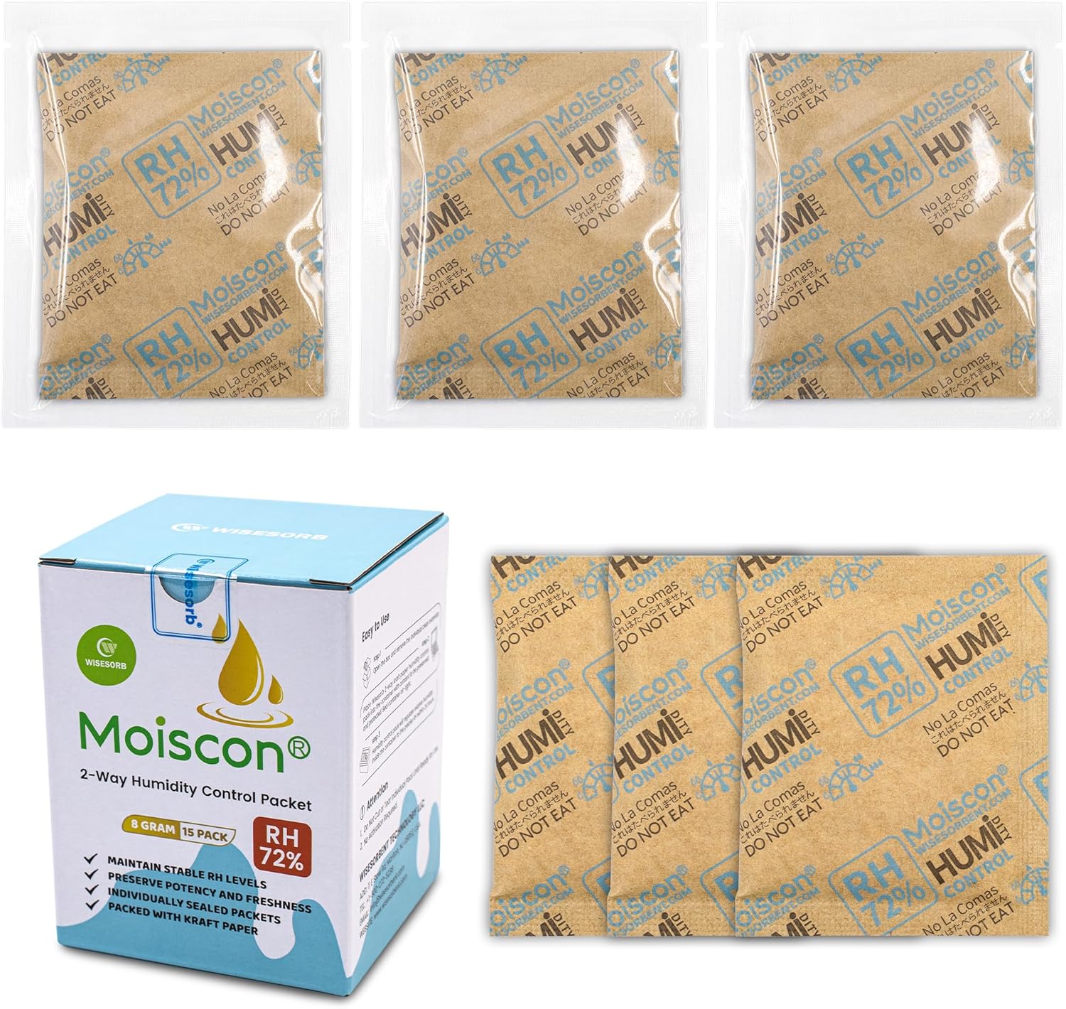 - 【72% Two-Way Humidity Control】Wisesorb packets actively absorb excess moisture or release hydration as needed, preventing overdrying or mold. Ideal for curing dried flowers, herbs, spices, coffee beans, and preserving instrument reeds/violins.