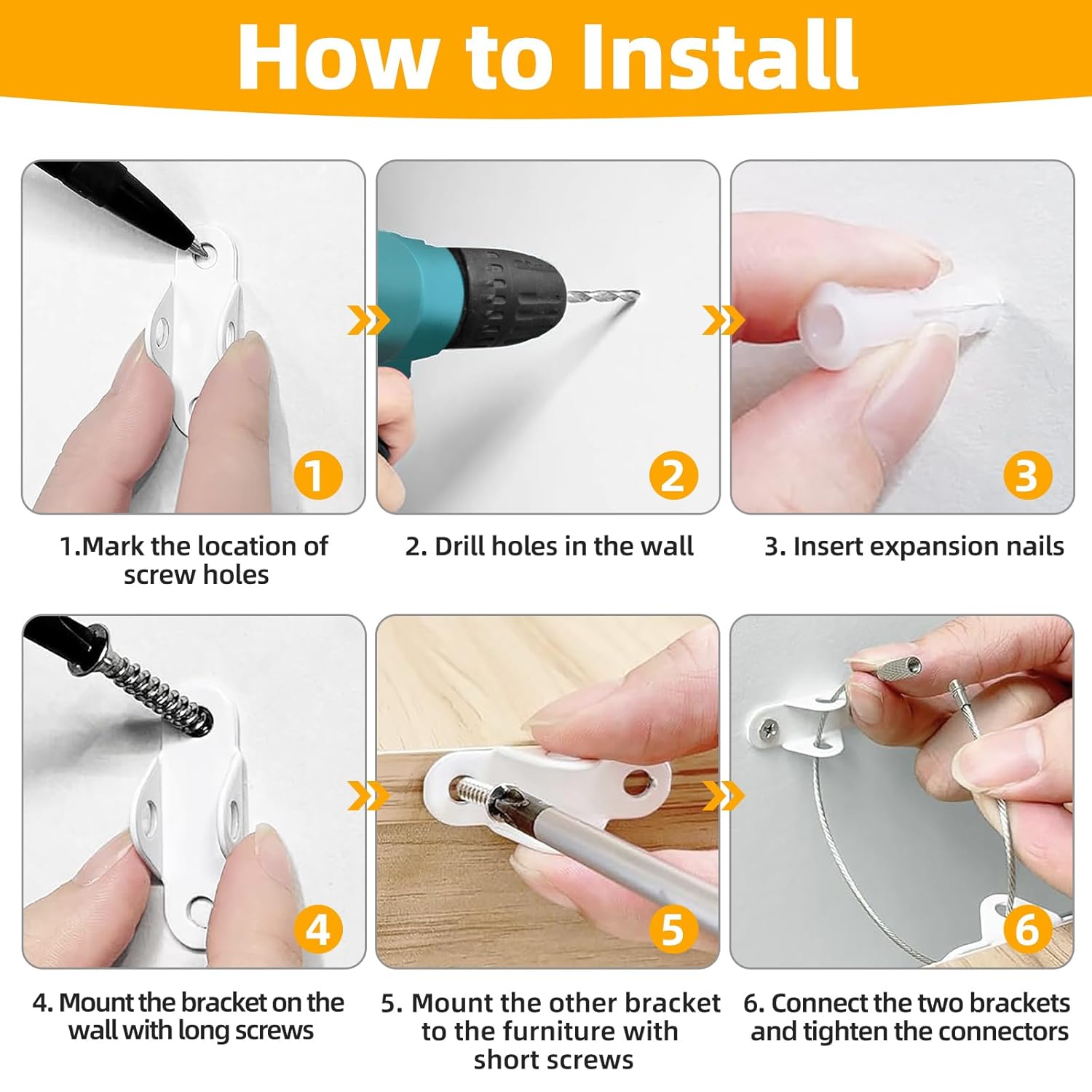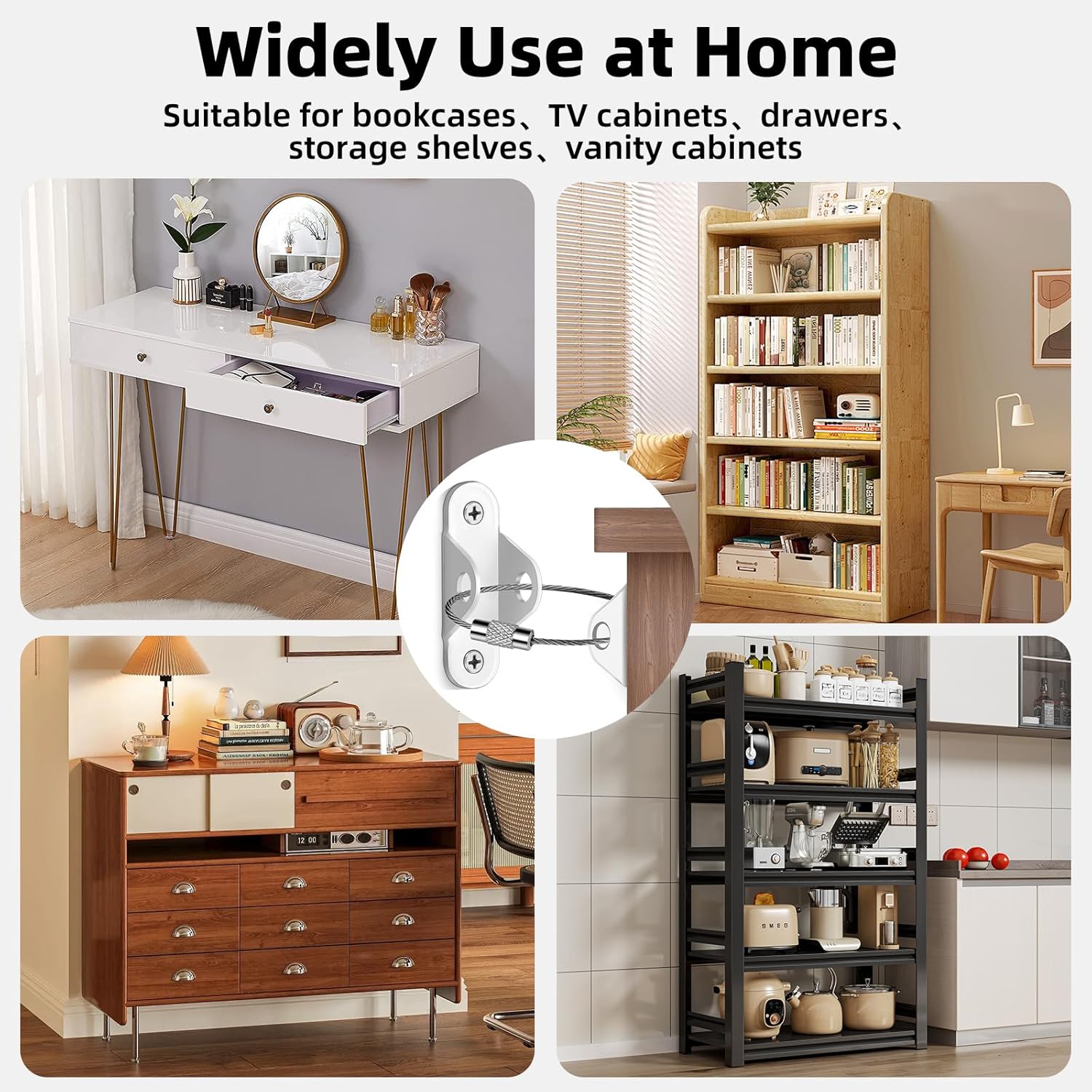 - WIDELY APPLICABLE SCENARIO : This furniture wall anchor is suitable for various furniture types, such as bookcases, dressers, closets, TV cabinets, etc., preventing accidents caused by tipping furniture. Its detachable design makes it more convenient when you need to clean the back of your furniture or move it to meet diverse life needs.