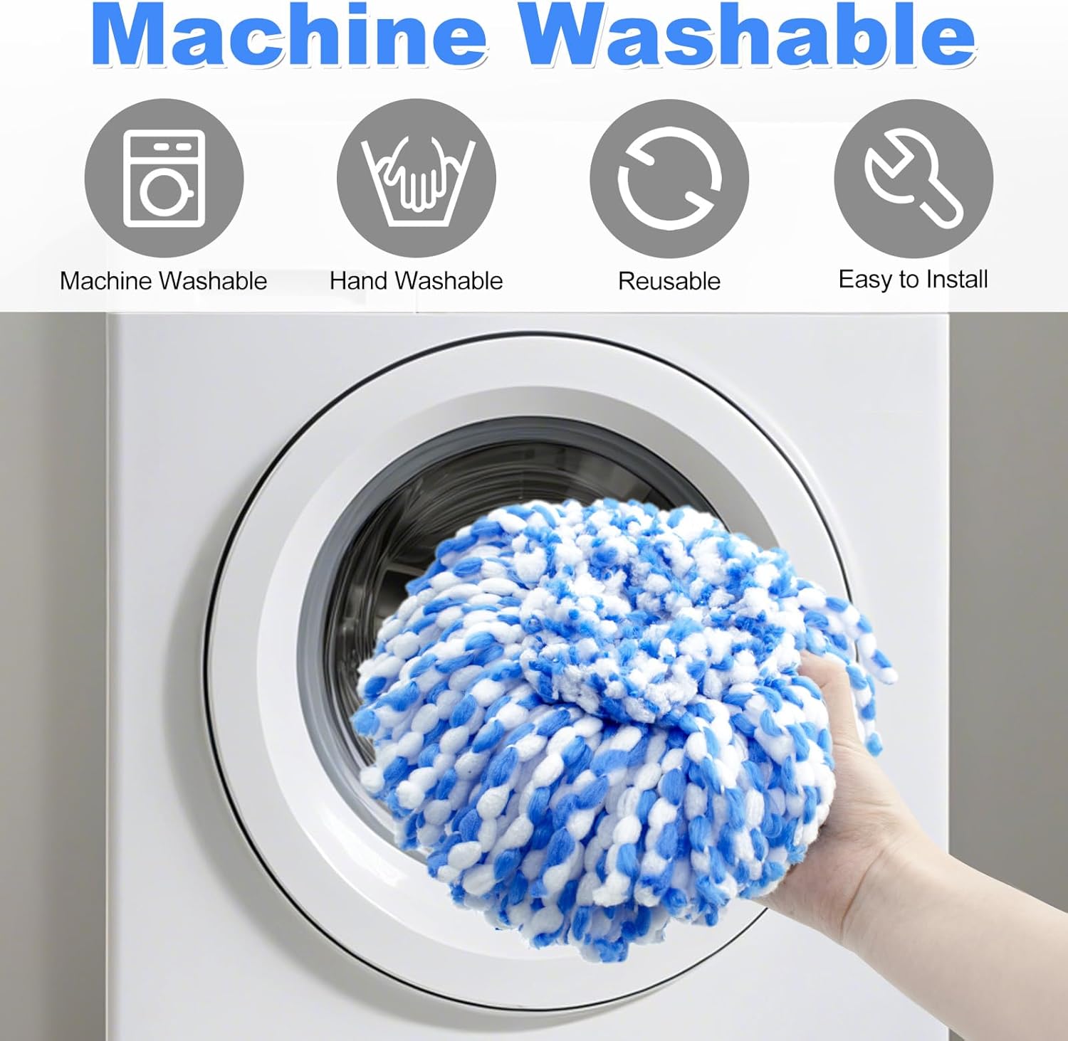 - [MACHINE WASHABLE AND REUSABLE]: This mop head replacement are machine washable and reusable, simply wash and dry, making them an eco-friendly and cost-effective choice for your cleaning needs.