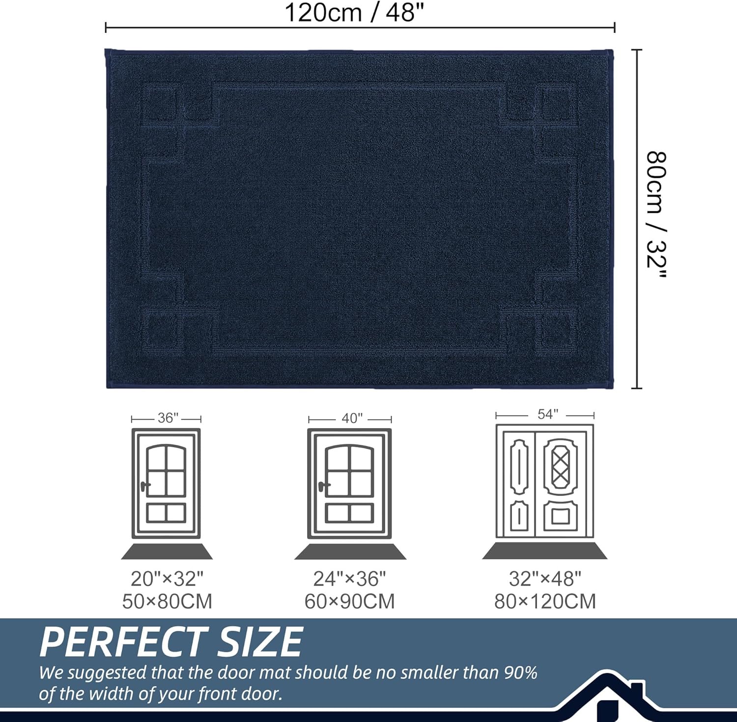 BEQHAUSE Door Mat 32" x 48", Non-Slip Door Mats Indoor Entryway Rugs Washable Low-Profile Absorbent and Stain Resist Floor Mats, Dog Door Mat for Front Back Door, Muddy Wet Shoes & Paws, Navy Blue
