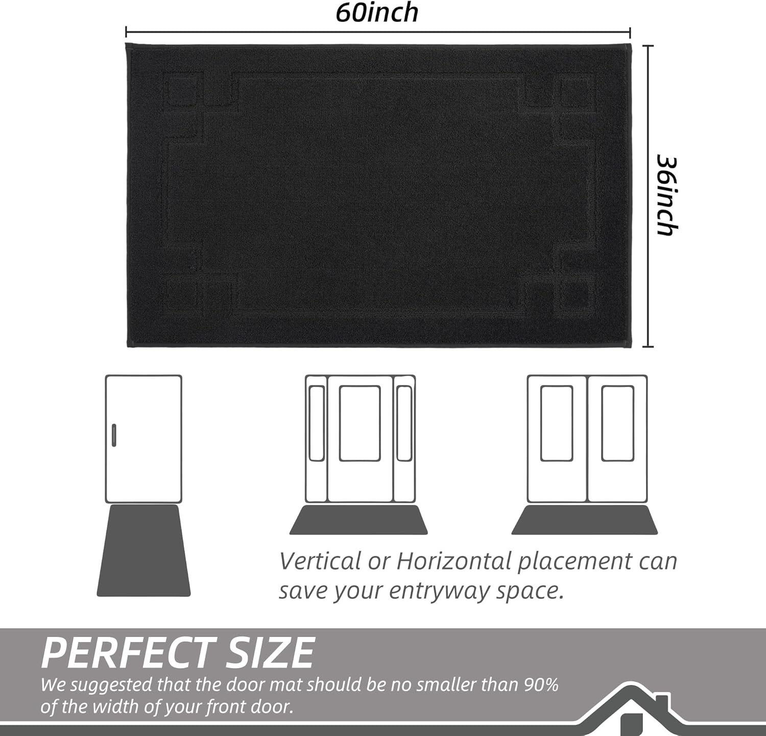 BEQHAUSE Door Mat 36" x 60", Non-Slip Door Mats Indoor Entryway Rugs Washable Low-Profile Absorbent and Stain Resist Floor Mats, Dog Door Mat for Front Back Door, Muddy Wet Shoes & Paws, Black