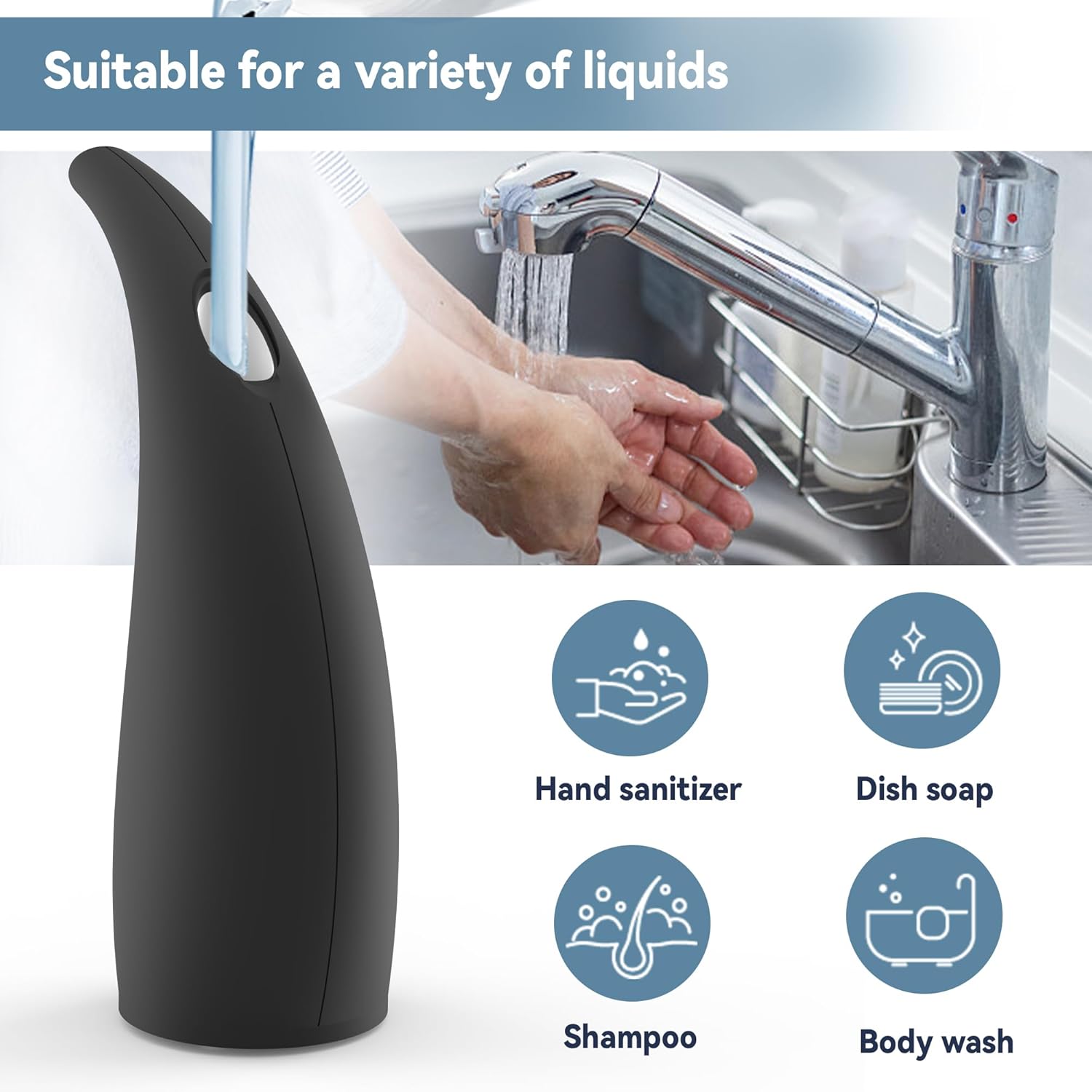 - 【Universal Liquid Compatibility】Works with any hand soap, dishwashing liquid