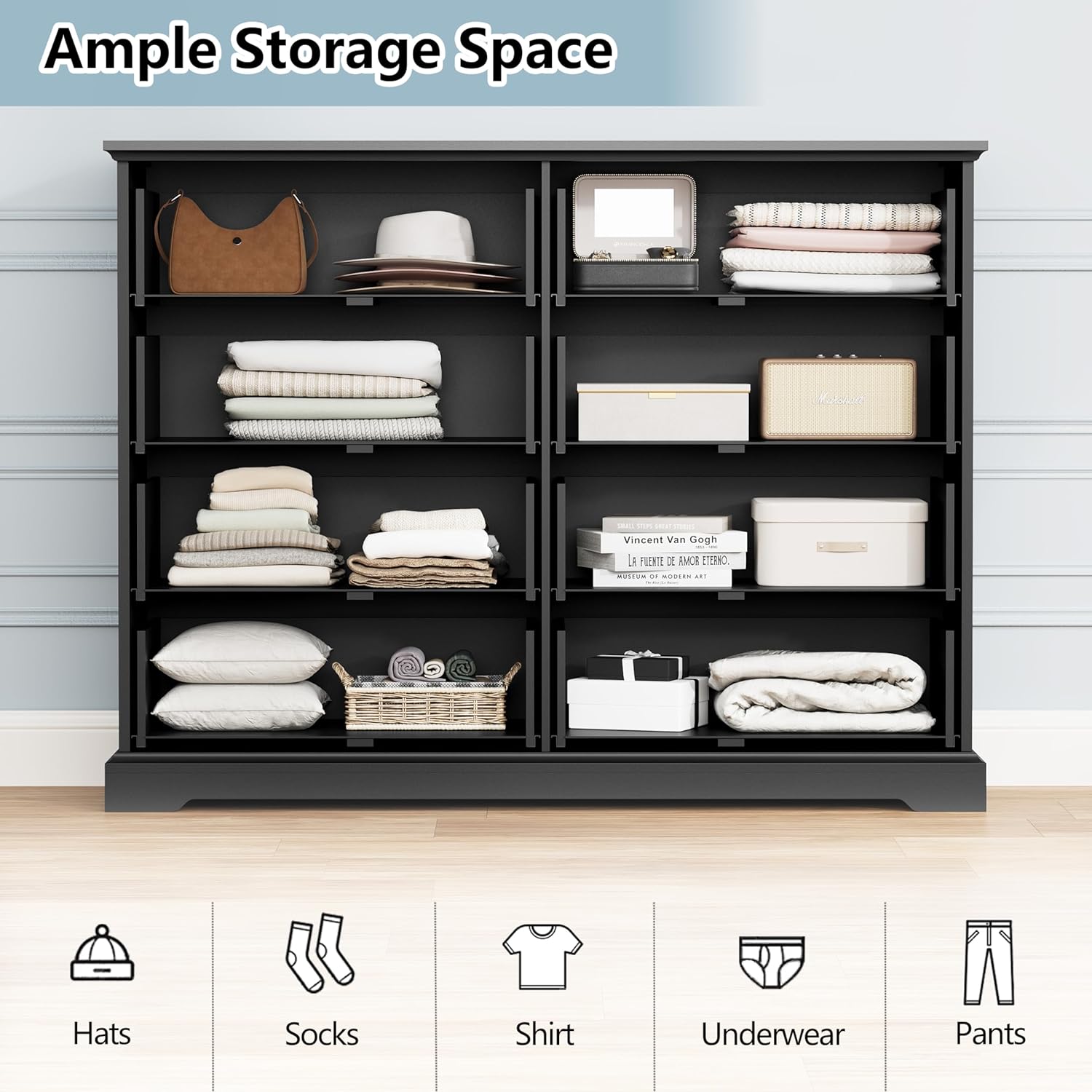 8 Drawer Dresser for Bedroom, 47" Wide Wooden Chest of Drawers, Rustic Farmhouse Dresser with Large Drawers & Metal Handles, Modern Storage Organizer for Closet, Living Room, Hallway, Black