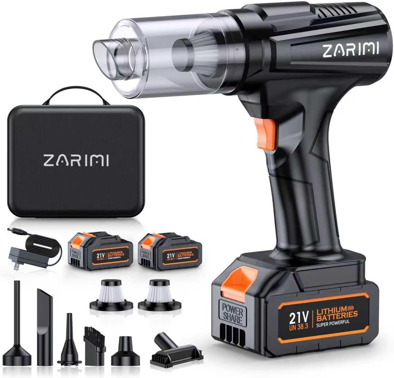 • Included Components : Battey*2, Car Vacuum Portable Cordless*1, Nozzle*6, Reusable Filters*2, Storage Bag*1