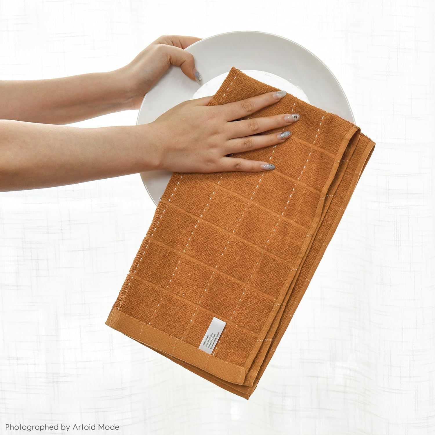Artoid Mode Checkered Designed Cotton Caramel Orange Terry Kitchen Dish Towels, 15x25 Inch Soft Absorbent Quick Drying Cleaning Tea Towels Set of 4