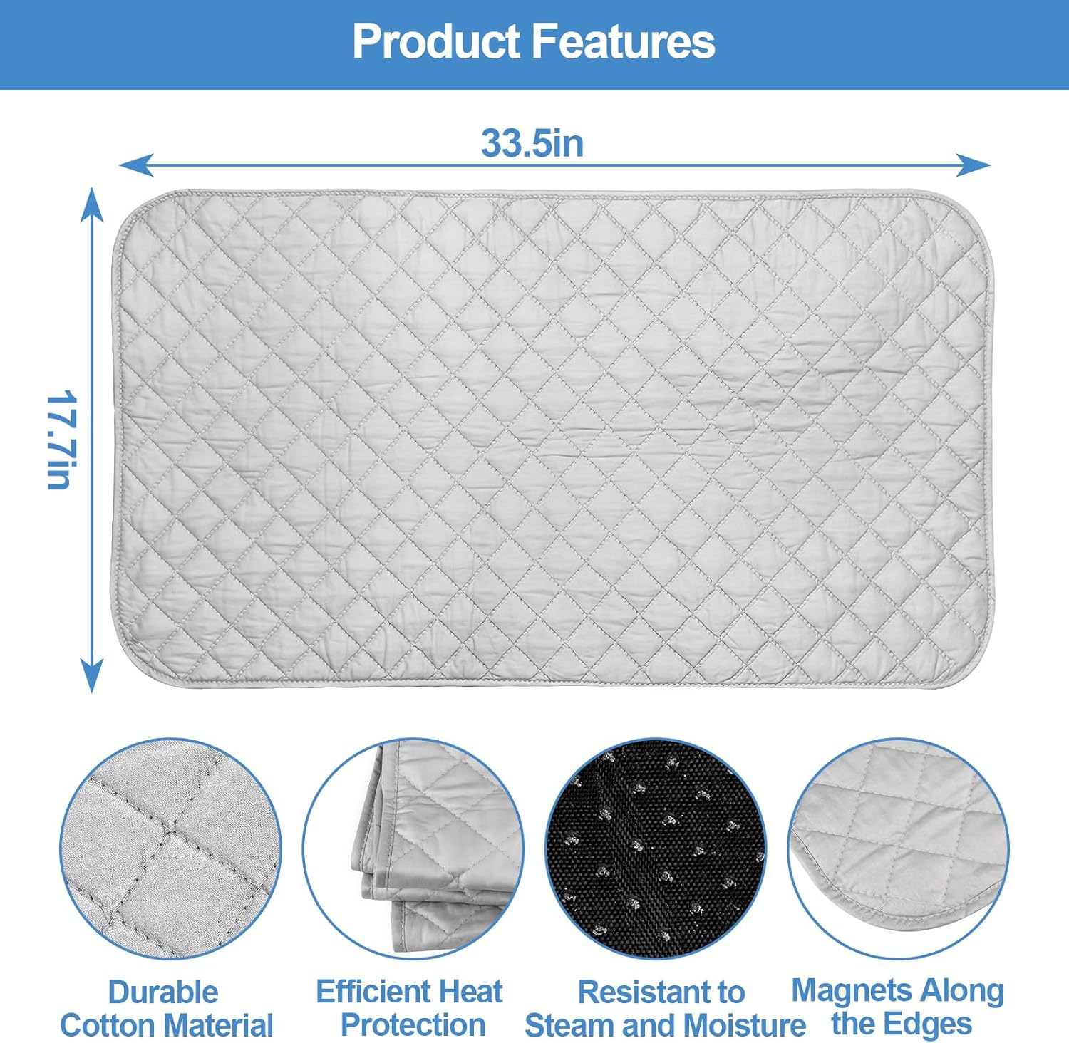 - Strong Magnetic Design:Our portable ironing pad features a unique magnetic corner design and can be easily adsorbed to metal surfaces on most household items.It provides a more stable ironing experience, making it easier and safer to operate.