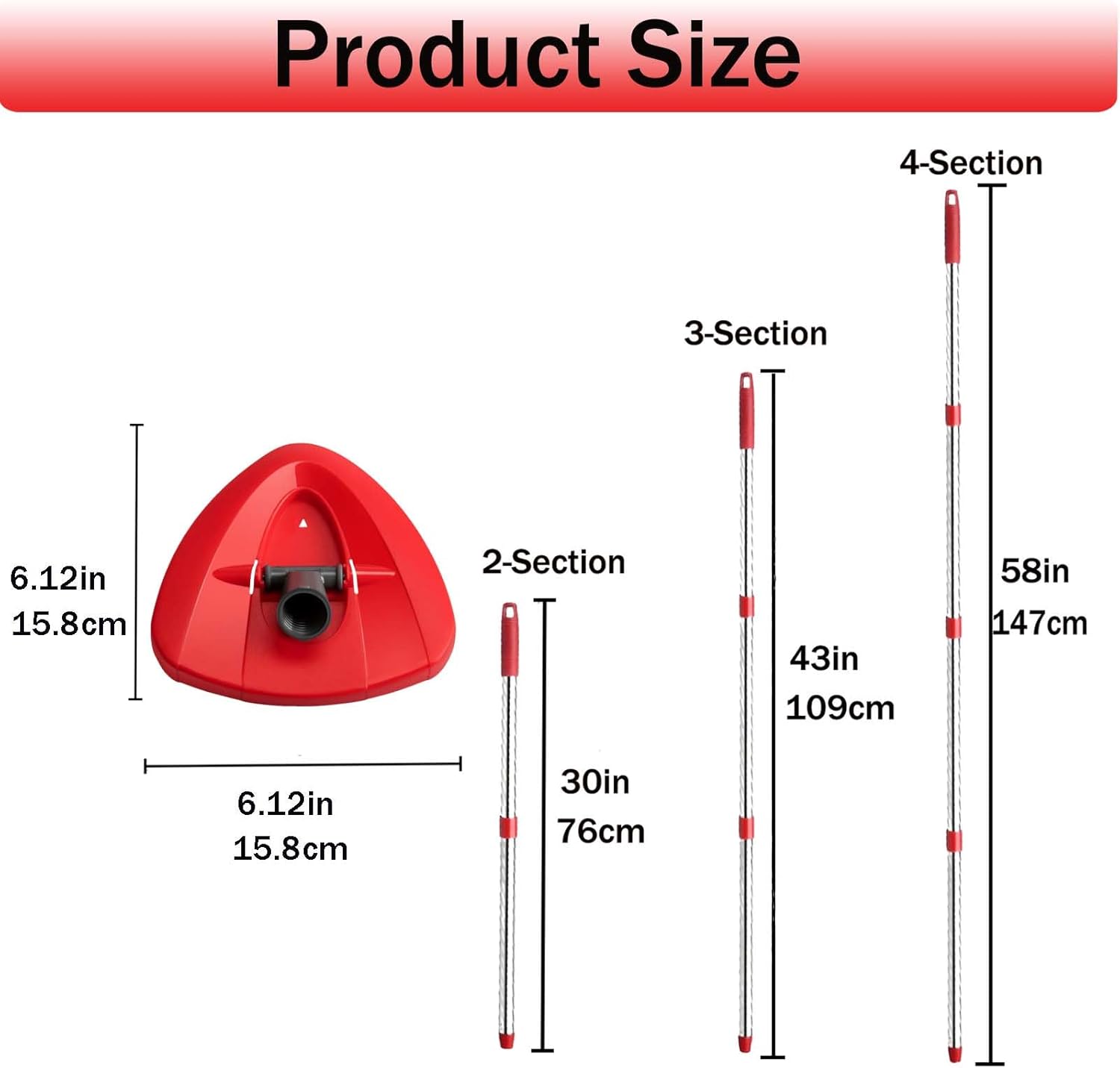 - 【Easy to install and us】The mop's handle is made of high-quality stainless steel material, ensuring durability and sturdiness for long-lasting use. It comes in 4 sections and can be adjusted from 30in to 58in. You can combine it into different sizes according to your height, usage habits, and scenarios. Sufficient comfort will make your cleaning job much easier.