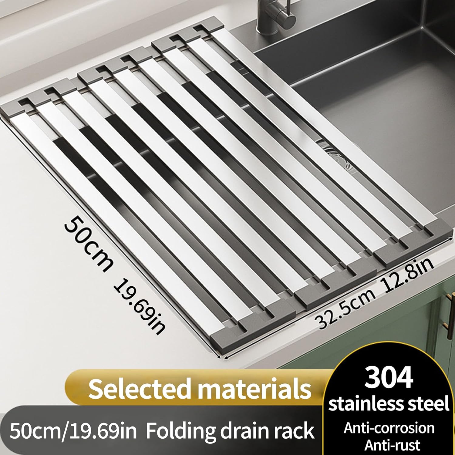 Foldable Dish Drying Rack, Over The Sink Dish Drying Rack ,Dish Drying mat,Dish Drying mats for Kitchen Counter,Stainless Steel Multifunctional mat (19.69×12.8in)
