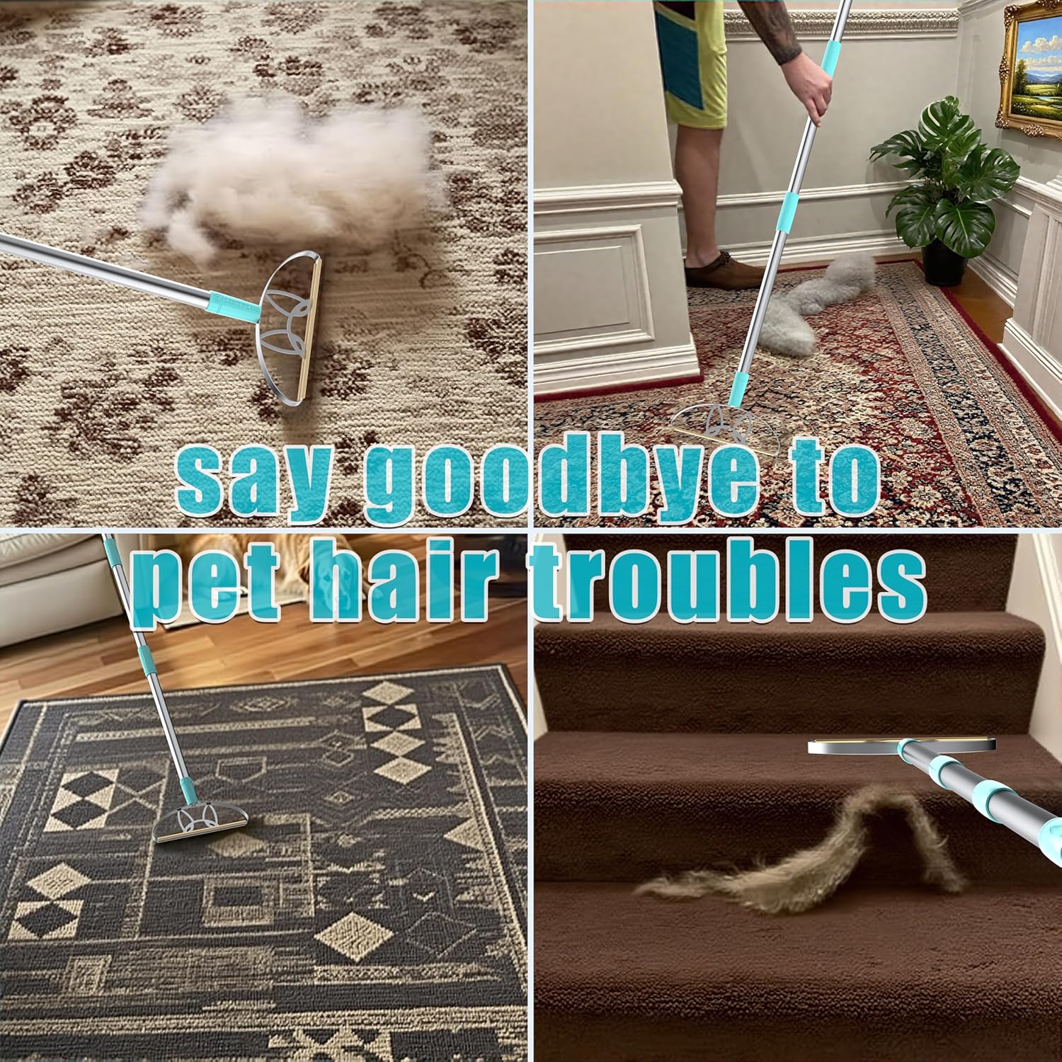 Ultra & Pro LINTPLUS Combo – 63” Long Carpet Rake for Pet Hair + Pro Attachments – Heavy Duty Stainless Steel Handle, Stand-Up Design – Effortless Fur & Lint Removal for Large Rugs, Carpets, Floors