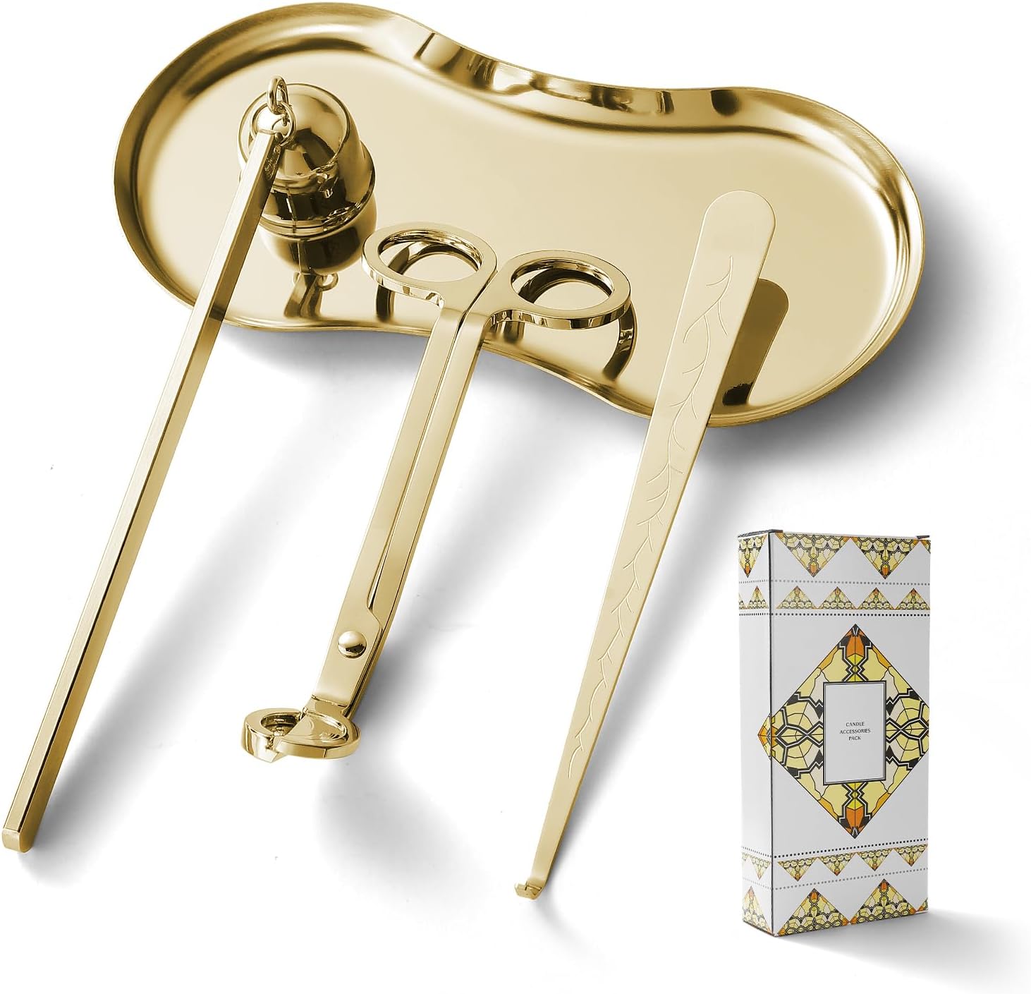 - Professional 4-in-1 Candle Care Kit: Your essential set includes a Candle Snuffer, Candle Wick Trimmer, Candle Wick Dipper,and Tray Plate. Perfectly sized tools ensure effortless, smoke-free extinguishing, clean wick trimming, and precise wick positioning for safer, cleaner candle burning and extended candle life. Comes in a stylish gift package.