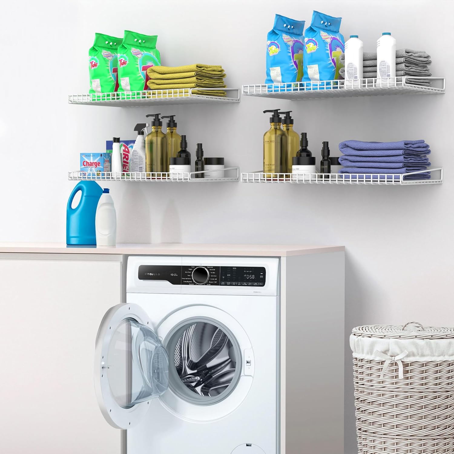 Ultrawall Wall Mounted Storage Shelf for Garage, 4 Pack Metal Shelf Rack, Heavy-Duty Wall Organizer Shelves Suitable for Shop, Shed, Garage 23.5inch x 12inch(White)