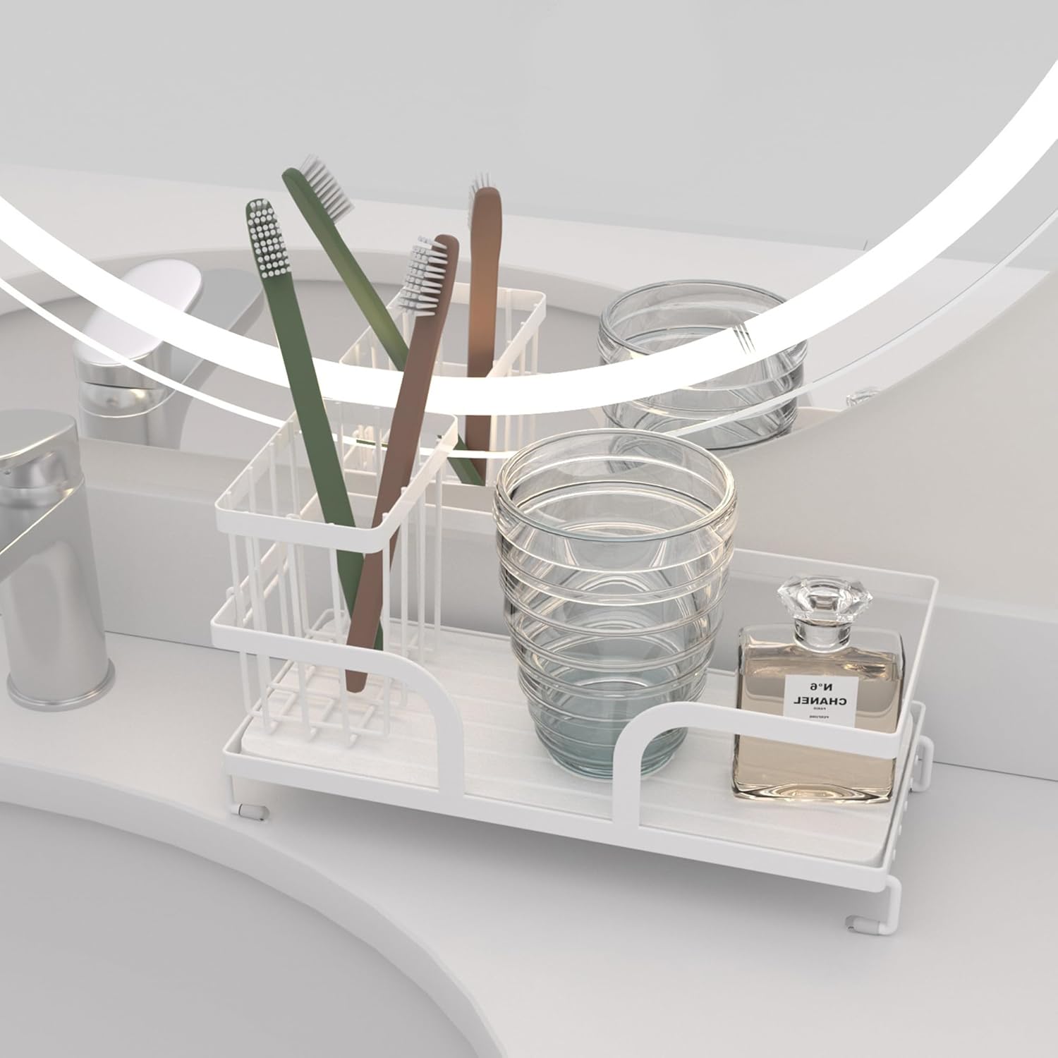 - SPACE-SAVING: Compact countertop organizer keeps cleaning supplies neatly arranged while maximizing your sink space