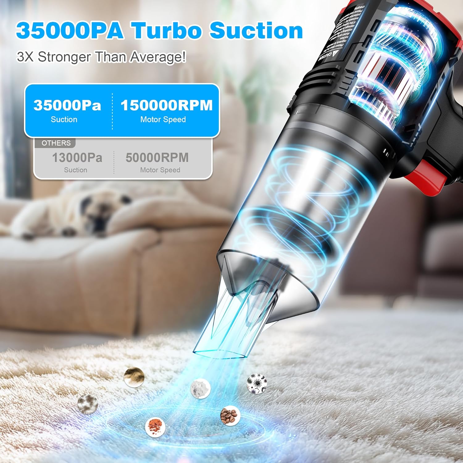 Cordless Handheld Vacuum Cleaner - 35000PA Strong Suction for Car & Home, Car Vacuum Portable Rechargeable Lightweight for Pet Hair with HEPA Filter, Quick Clean in Office/Desk/Couch (Red)