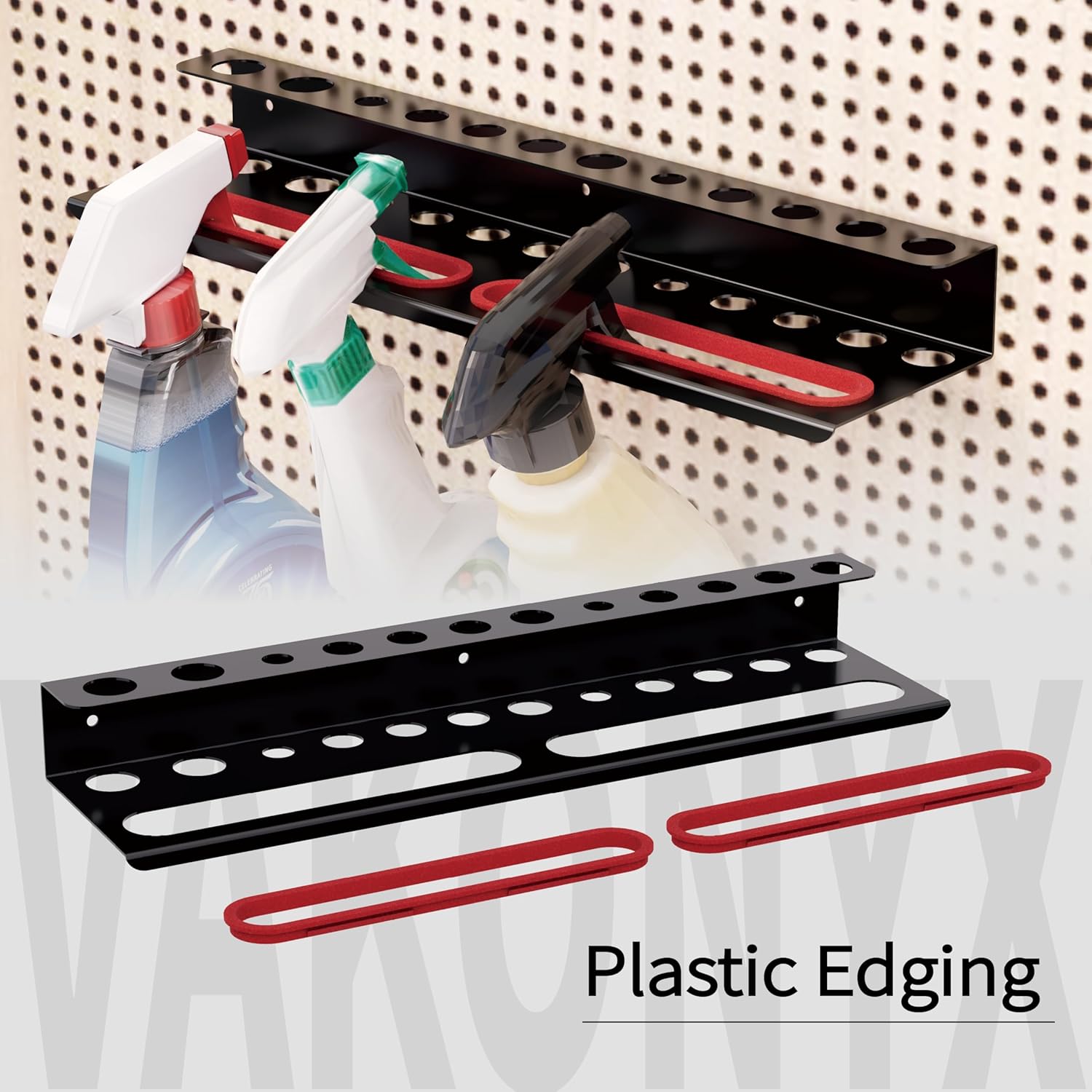 Wall Mount Brush & Spray Bottle Holder Combo Rack for Garage, Detailing Organizer with Mounting Hardware - Holds 12 Brushes & Hanging Rail for Bottles