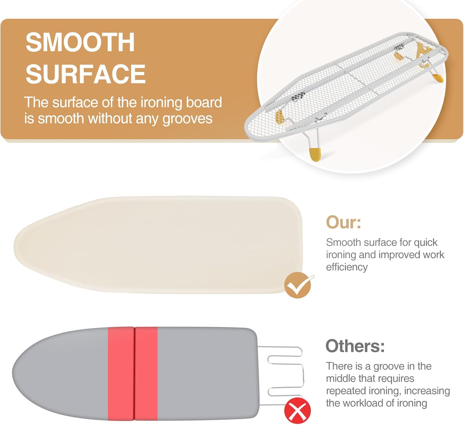 - Sturdy & Foldable Design – Our tabletop ironing board features foldable legs with non-slip foot caps for stability during use and easy storage, saving space.