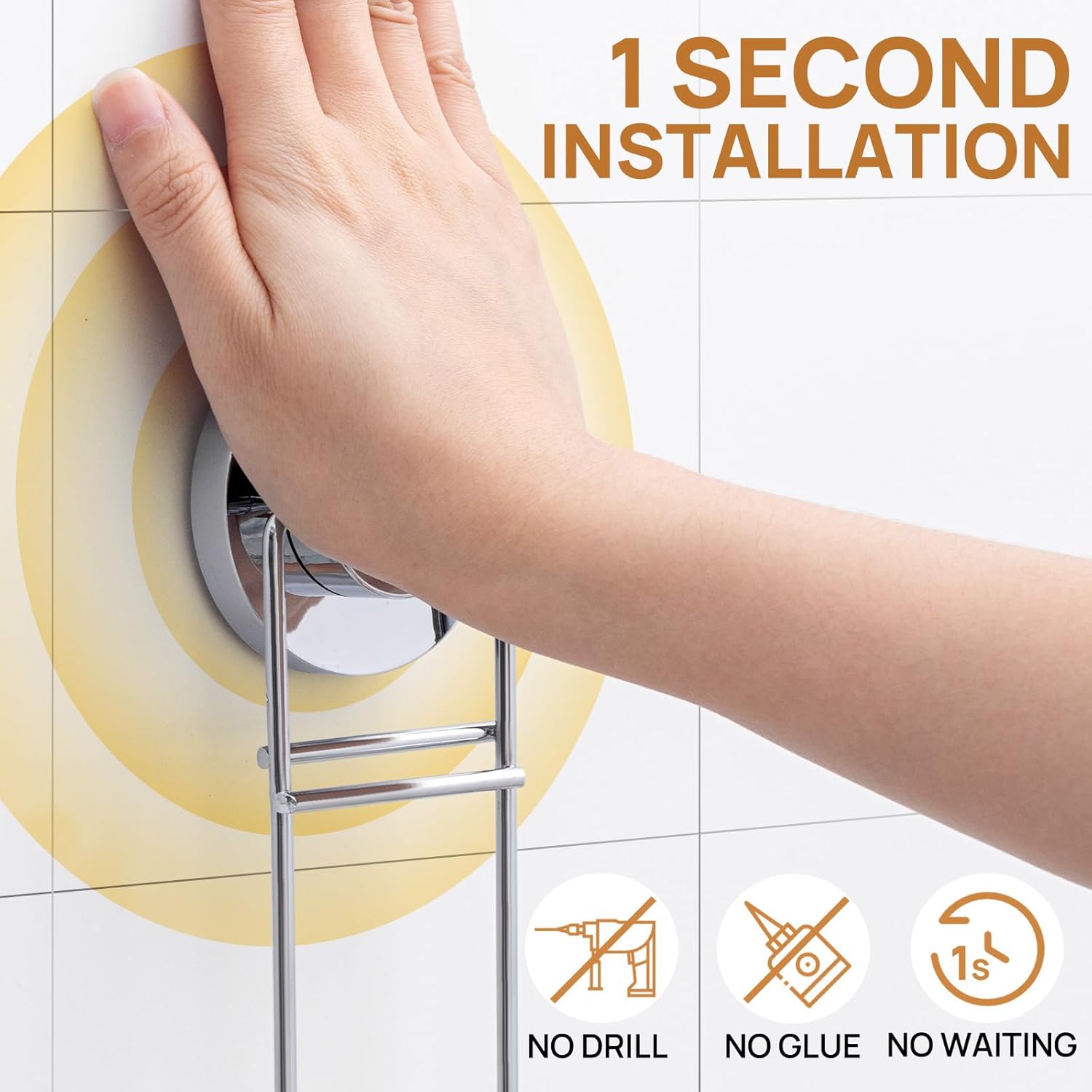 - EASY INSTALLATION: No drilling, screws, glue, or tools are required. Simply choose a clean and smooth surface, take off protective cover, push the suction cup hardly with the palm of your hand until you hear sound of "PUFF"