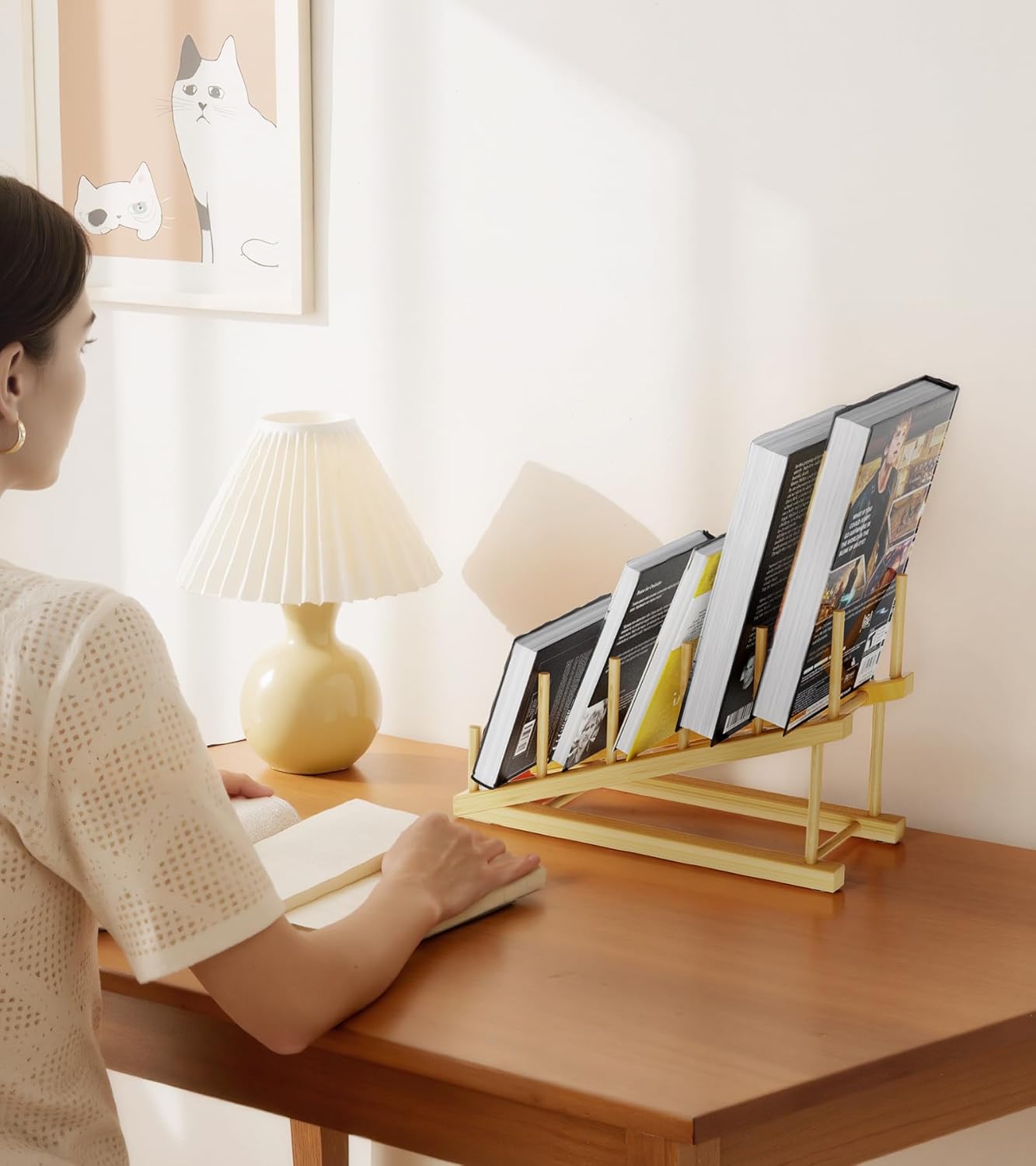 2-Pack Bamboo Dish Drying Rack, 5 Slots Kitchen Organizer Craft Show Display Stand for Holds Plates, Cups, Cutting Boards, Pot Lids, Canvas, Books, Records and Magazine