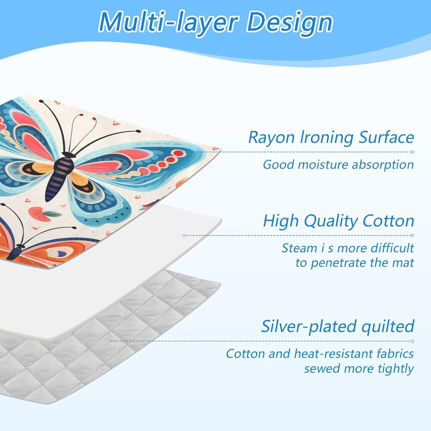 Decorative Butterfly Floral Ironing Mat Thickened Ironing Blanket Travel Portable Double-Side Using Ironing Pad Travel Isolate Heat Pad Cover for Washer Dryer Table Top Countertop 27.6x47.2in