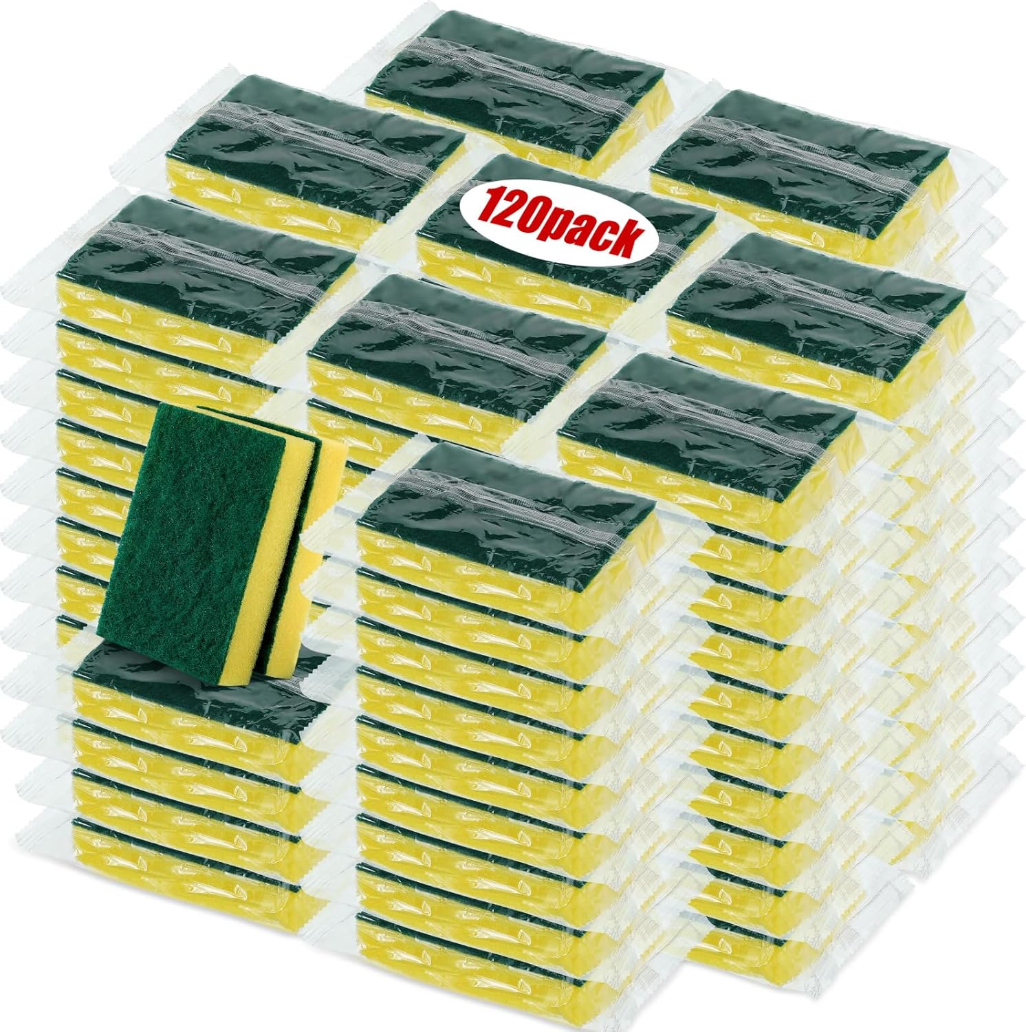 Tanlade 120 Pcs Individually Wrapped Sponge Dishwashing Sponge Bulk Non Scratch Scrub Sponges Kitchen Scouring Pad for Household Cleaning Rental Dishes Hotel Apartment Car (Yellow,Green)