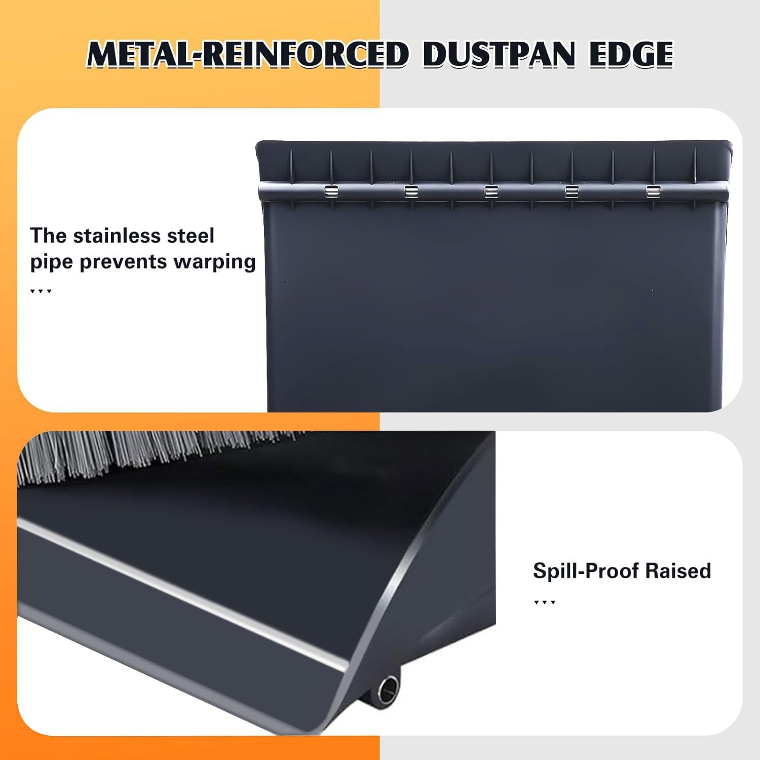 - 【Heavy-Duty Dustpan Long Handle】 ✔️ Commercial-grade stainless steel tubes - Won't snap like flimsy brooms ✔️ Reinforced dustpan with metal edges - Solves bent edges over time. ✔️ Precision-engineered joints prevent loosening during sweeping.