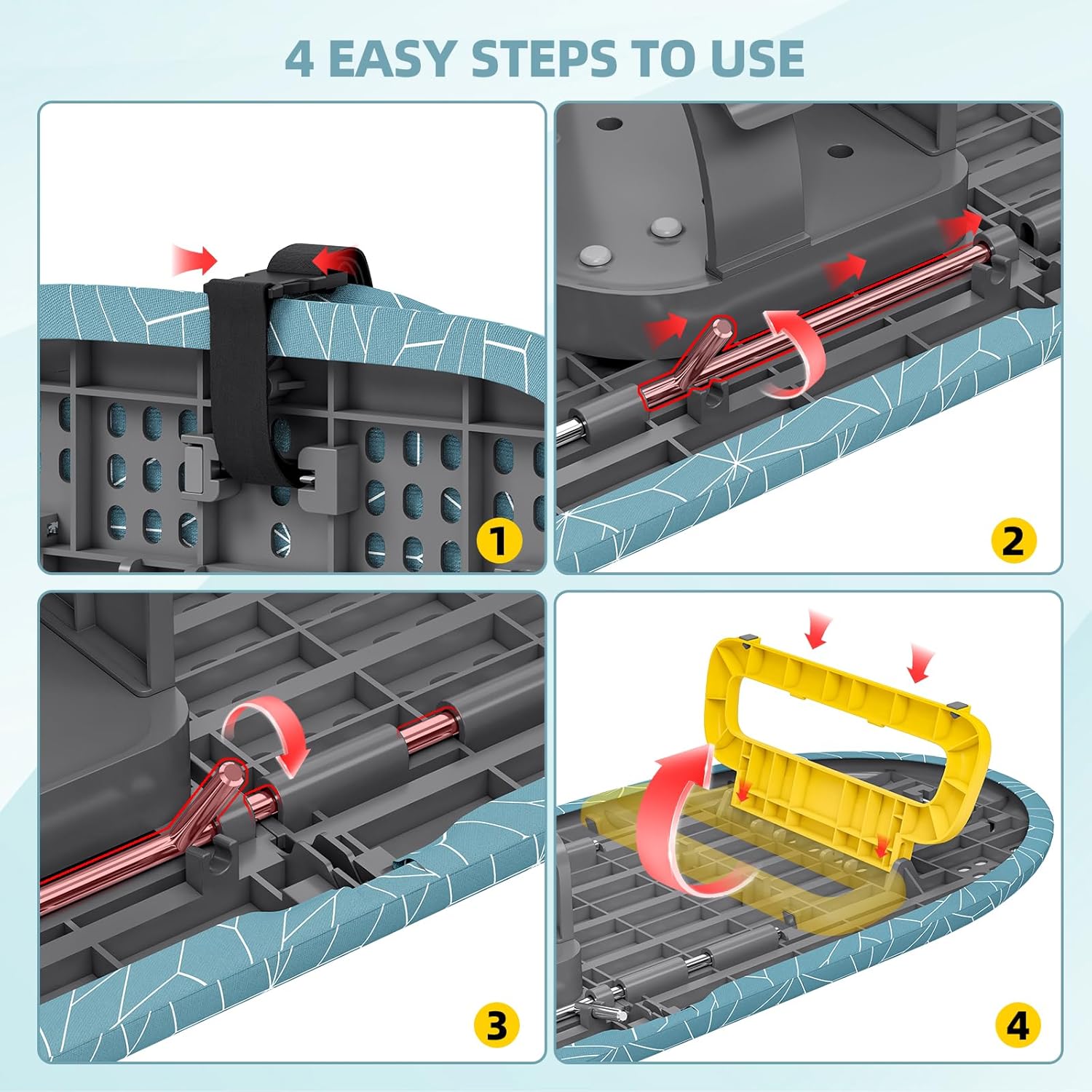 - [Easy Storage] The compact portable ironing board equipped with a convenient hanging rope so that our tabletop ironing board small can be hung in the closet or hooks mounted on wall and door, making the storage much easier.