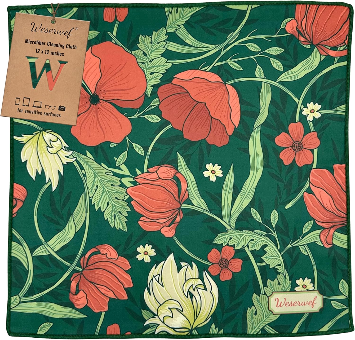 WESERWEF Design Microfiber Glasses Cleaning Cloth – Premium Cleaning Cloth for Eyeglasses, Screens, Tablets, Cameras & Lenses, 12" x 12", Ultra-Soft & Scratch-Free (Garden)