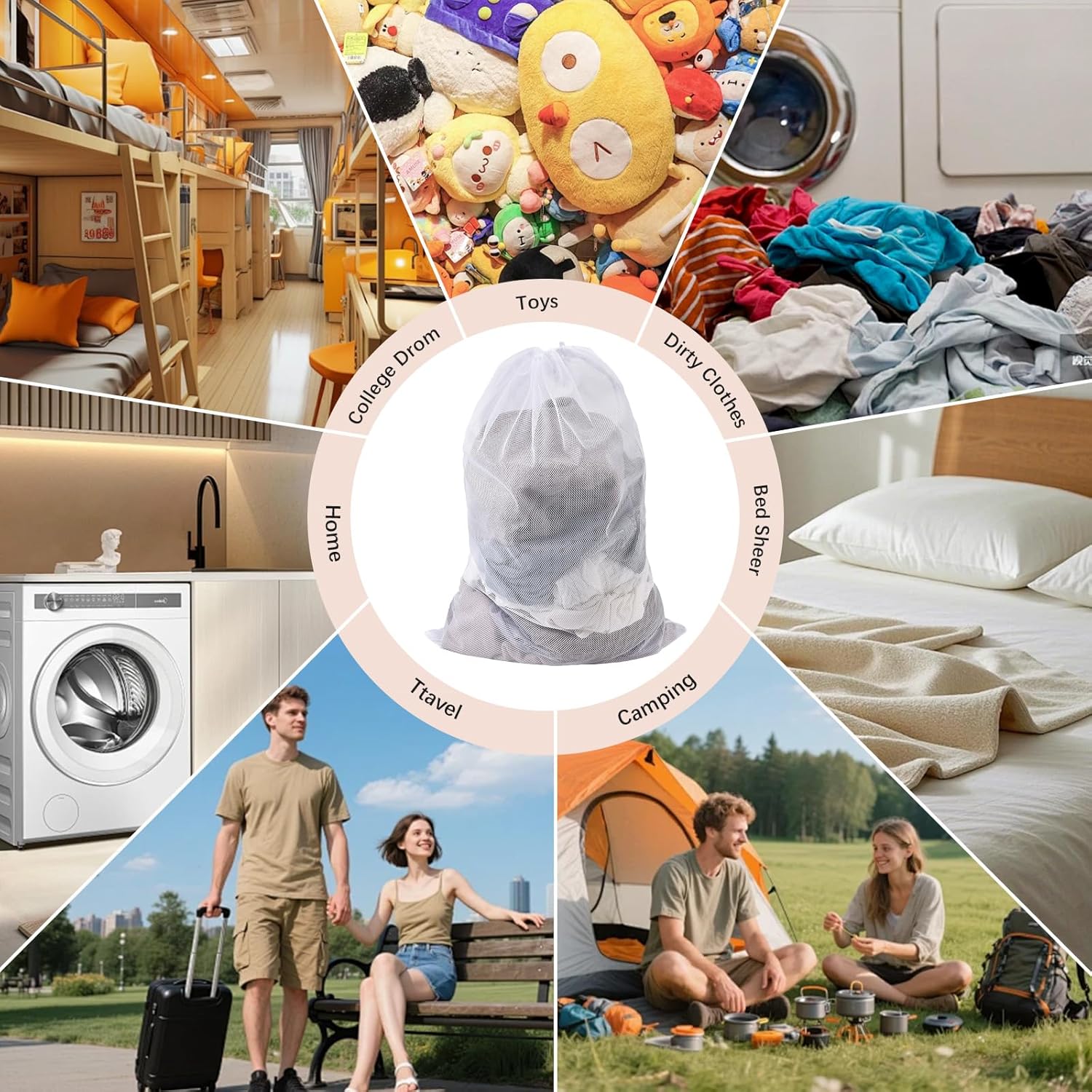 - 【Versatile Utility for Home & Travel】 Works as a versatile mesh laundry bag, hamper liner, dorm essential, or travel organizer. These mesh bags for laundry are also ideal for beach gear, sports equipment, toy storage, and more—streamlining laundry and packing tasks