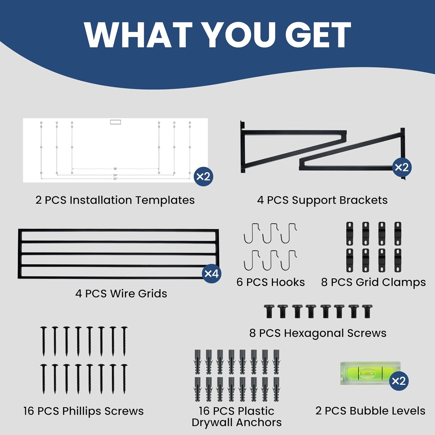 - HEAVY-DUTY LOAD CAPACITY: Each 2' x 4' wall shelf is designed to hold up to 250 lbs, providing a total of 500 lbs per set. Built from reinforced square-tube steel, these shelves easily handle heavy storage bins, toolboxes, camping gear, and bulky garage equipment without bending or sagging.