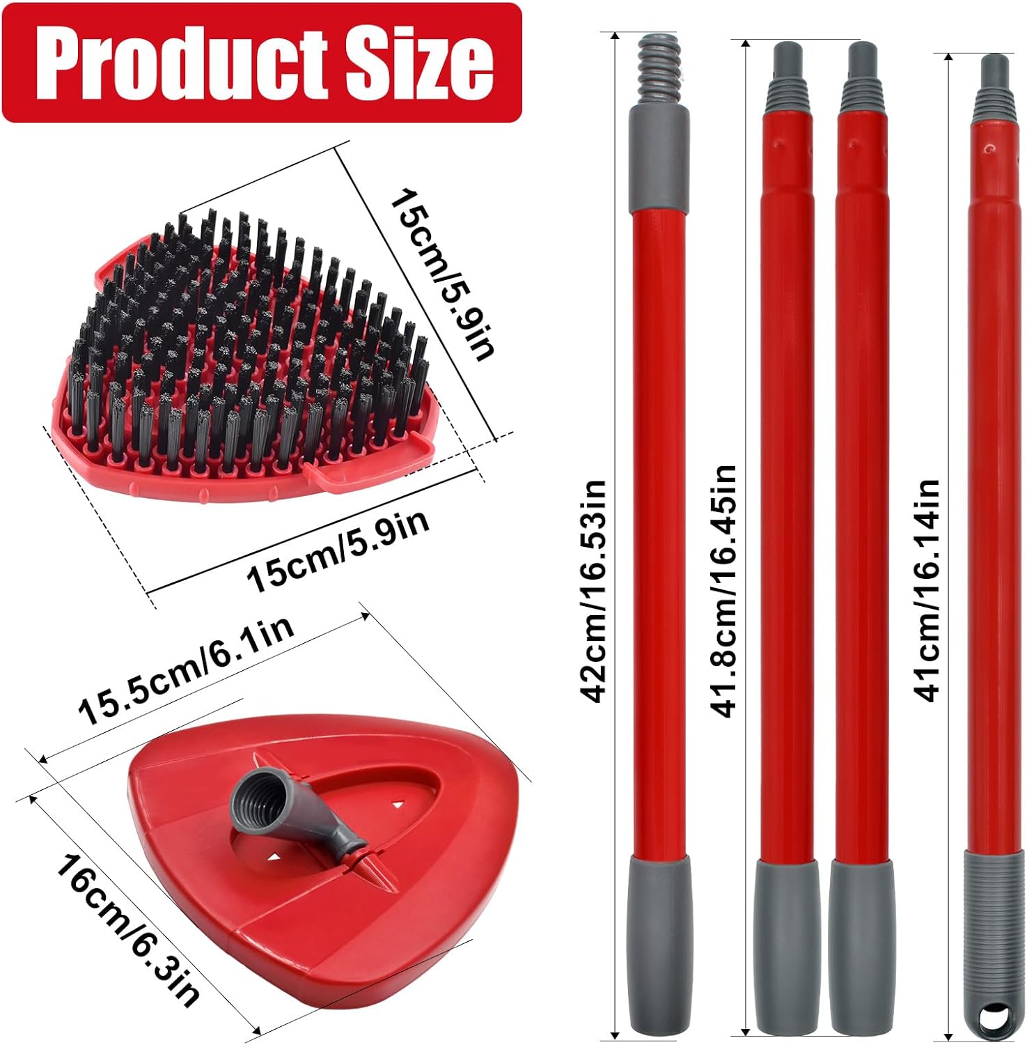 - Upgrade Brush Head: Compared to traditional brush heads, it is more plump.Featuring a fully bristled brush head with a 20-degree angled edge, the rigid outer bristles effectively tackle stubborn stains while allowing easy access to edges and corners. Complemented by softer inner bristles for efficient foaming and deep cleaning, the triangular-shaped brush head is engineered to reach tight spaces, making it ideal for versatile use in bathrooms, kitchens, walls, garages, decks, patios, yards, and more.