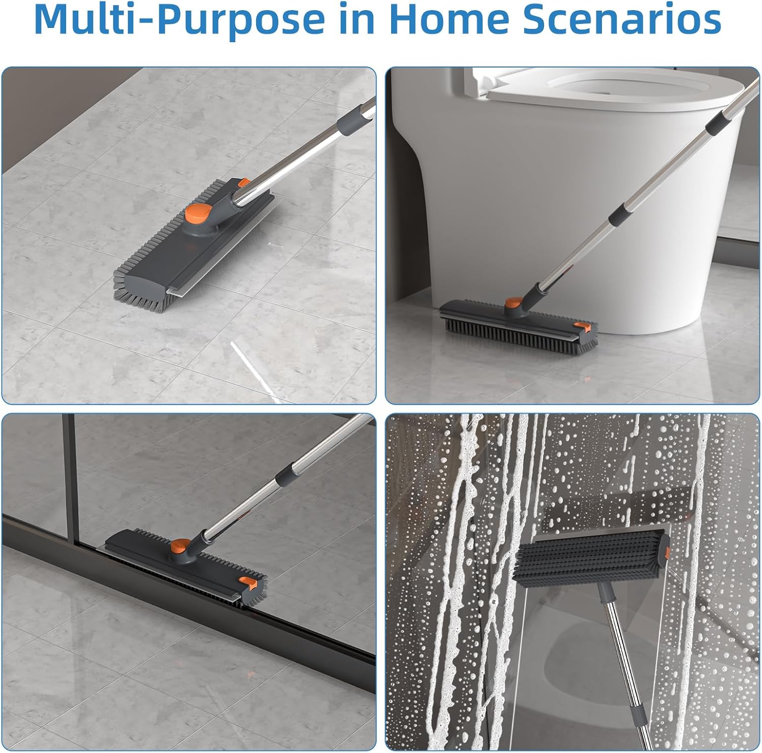 - 📏 Adjustable Extended Handle: Customize your reach! The sturdy stainless-steel handle extends from 16" to 52", so you can clean floors, windows, and showers standing up—no bending or back pain. addition, the handle top has hole for hung in any location