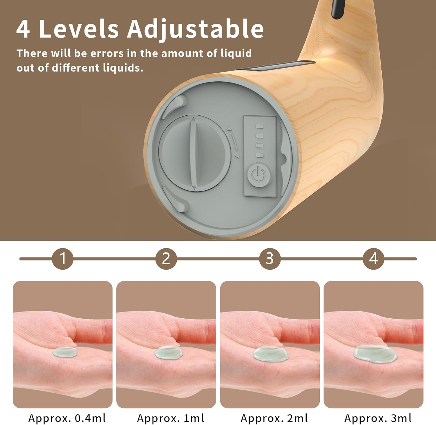 - 【Smart 4-Level Dispensing】This countertop soap dispenser offers 4 precision settings (0.4ml-3ml) - ideal for thick dish soap or light hand sanitizer. The kitchen dish soap dispenser helps reduce liquid waste while providing appropriate portions every time.