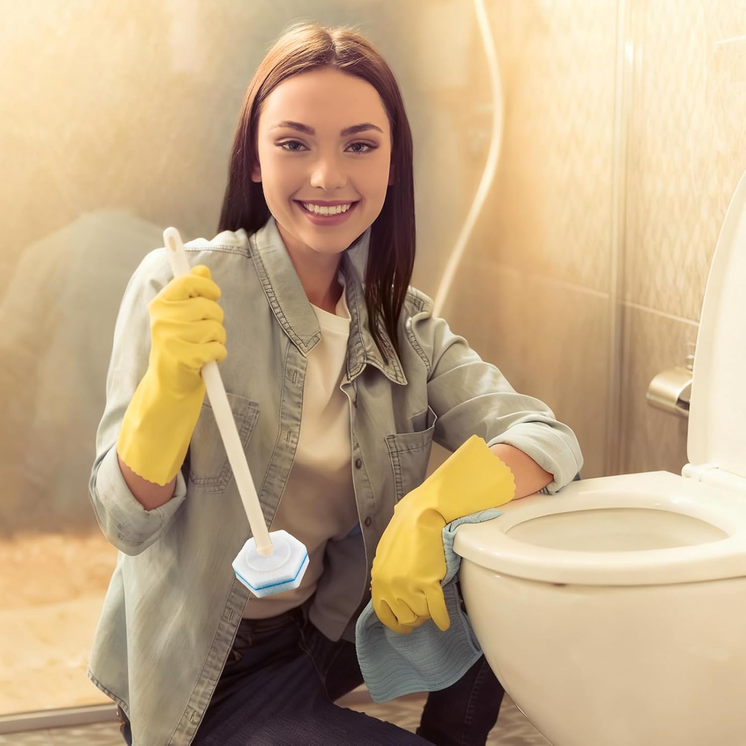 - 【Full Cleaning】- The hexagonal disposable toilet brush head cleans hard-to-reach places without damaging the toilet glaze.