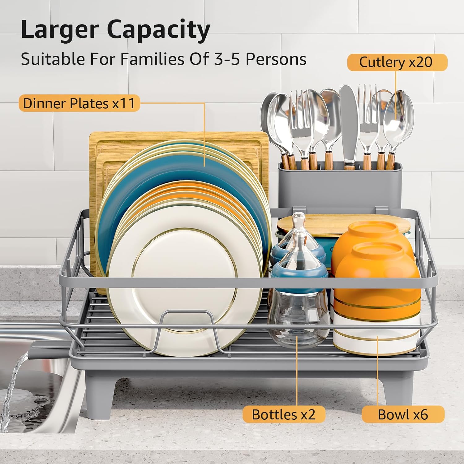 Dish Drying Rack for Kitchen Counter, Space-Saving Dish Rack, Multifunctional Dish Drainer Rack, Sink Kitchen Dishes Strainer, Dryer Rack with Drain Board, and Cutlery Holder,Small Size Gray