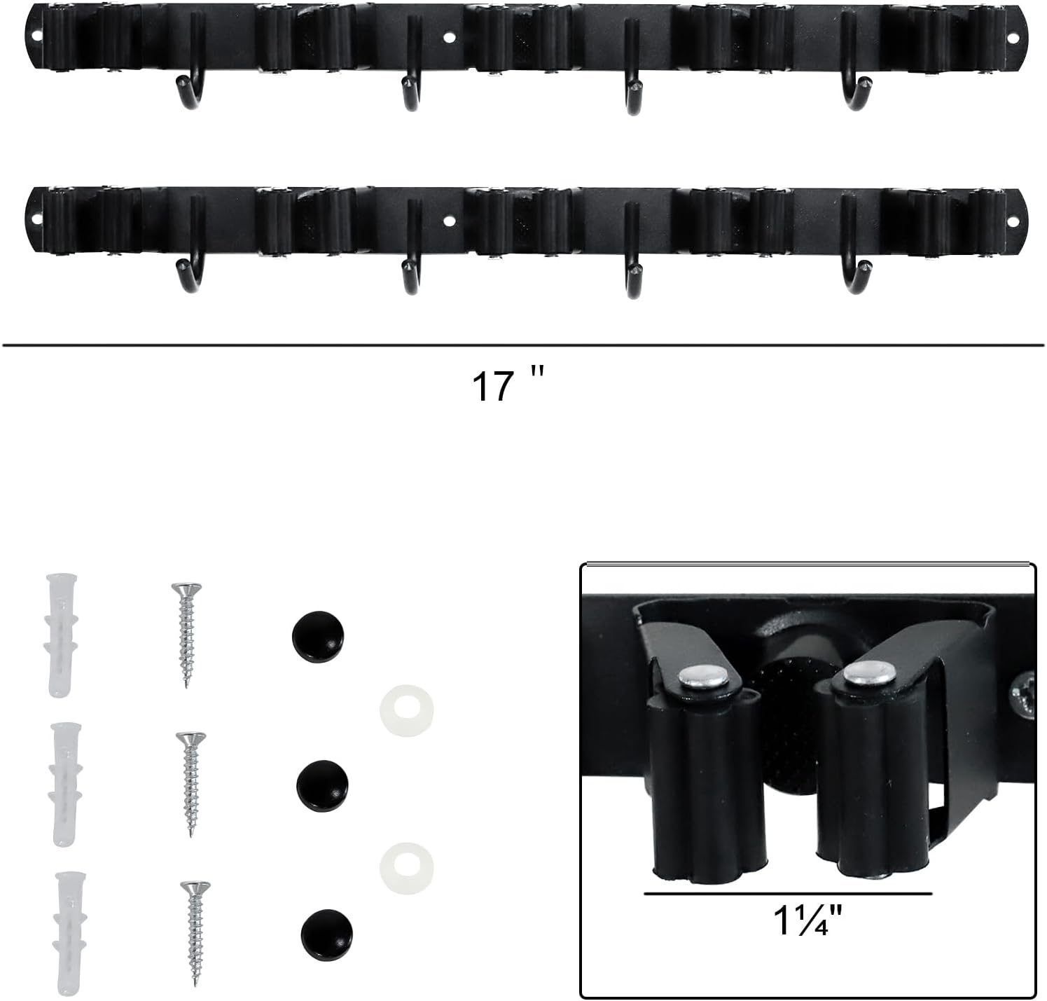 - Universal Handle - Suitable for wet and dry mops, brooms, rakes, and gardening tools (up to 1.4 inches thick). The flexible silicone rollers are adjustable to prevent slipping, keeping tools organized and meeting various storage needs.
