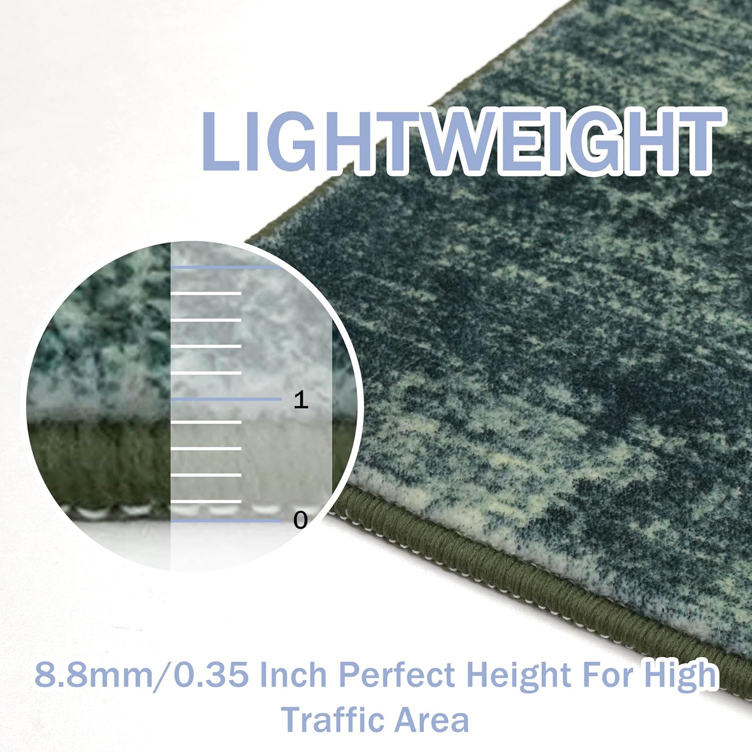 - Modern Abstract Printed Design: Transform your home with the modern abstract rug, a perfect blend of art and functionality. Printed with a modern abstract pattern, Its dynamic splashes of dark green, and light green hues add a vibrant touch to any room