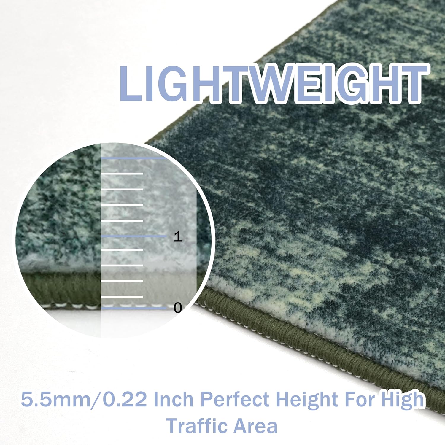 IOHOUZE Abstract Area Rugs 5x7 Ft Washable Rugs for Living Room, Non Slip Dining Room Rug, Printed Faux Wool Rugs for Bedroom, Floor Carpet for Kitchen Nursery Playroom, Dark Green